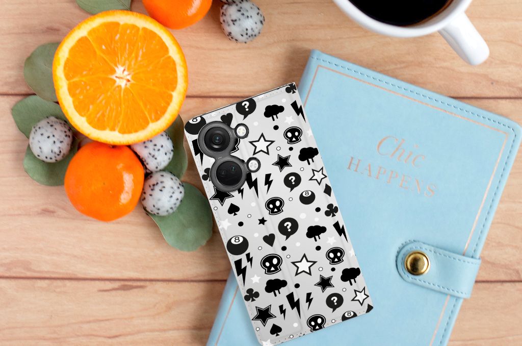 Bliksemflitsen, donderwolken, sterren en biljartballen vliegen op je af als je deze OnePlus Nord 3 Mobiel BookCase koopt. Het bijzondere Silver Punk design is van onze eigen ontwerper en vind je in geen enkel andere winkel of webshop. Ben je fan van dit soort stoere en opvallende hoesjes, dan kun je je geluk niet op als je ons assortiment smartphone accessoires bekijkt. Dit zeer populaire smartphone hoesje heeft 1 vakje en is aan alle zijden bedrukt met bliksemflitsen, donderwolken, sterren en biljartballen. Verder heeft de case een standaard en een magneet aan de binnenkant. De houder is van TPU, de buitenzijde van PU-leer. Zelfs doodshoofdjes zie je voorbijkomen in het design. Om maar aan te geven dat je met dit zilveren hoesje een krachtige smartphone accessoire te pakken hebt.