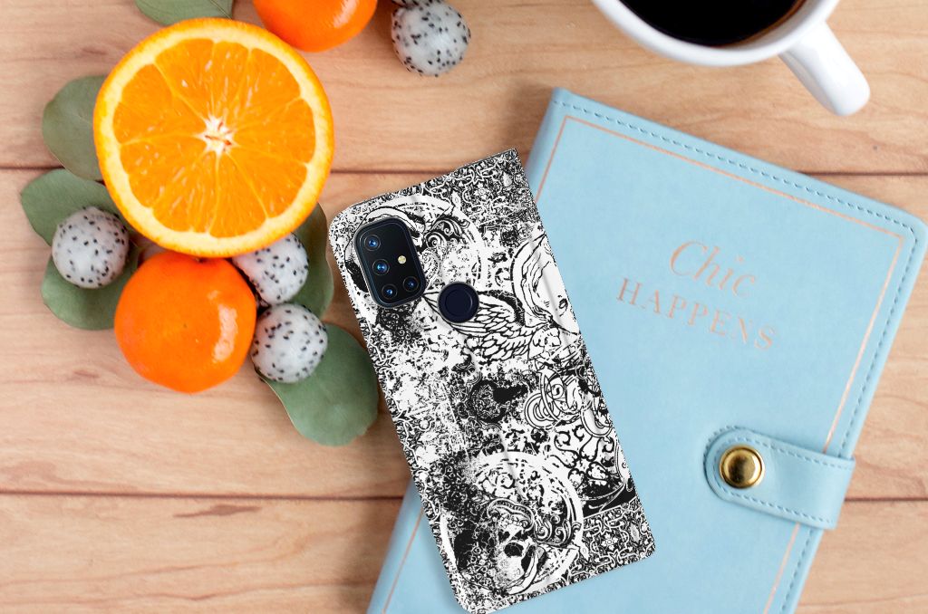 OnePlus Nord N10 5G Standcase Marmer Wit Zwart - Origineel Cadeau Man