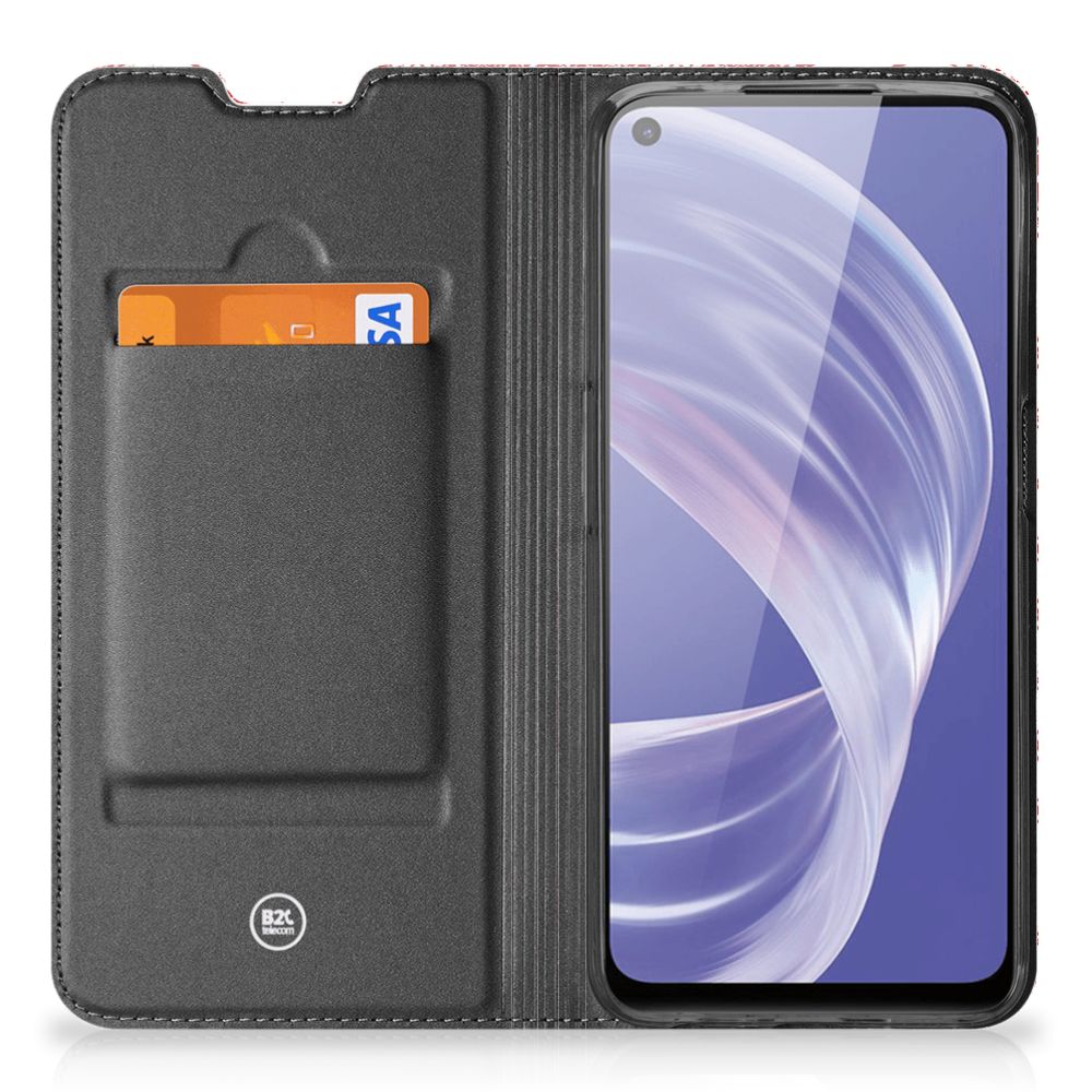 OPPO A73 5G Telefoonhoesje met Pasjes Pauw met Bloemen