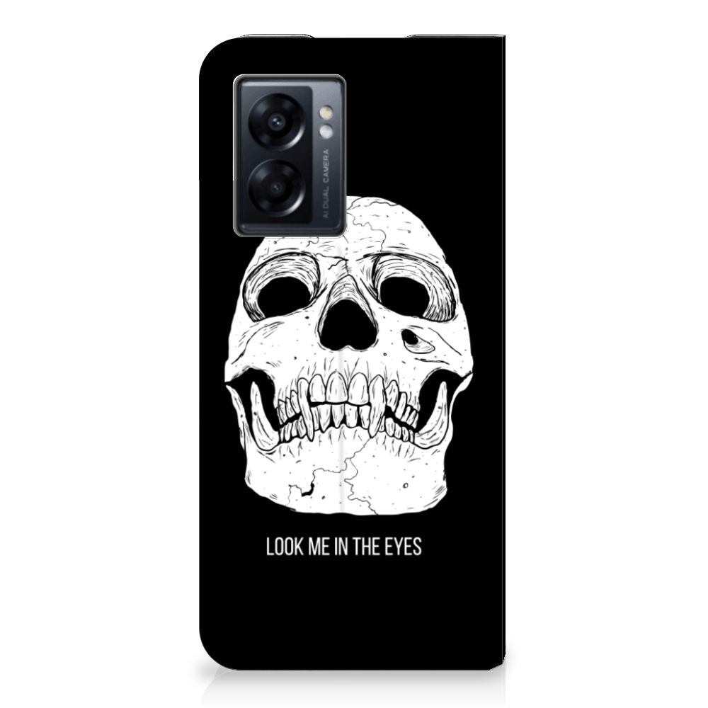 Ben je op zoek naar een uniek telefoonhoesje voor je OPPO A77 5G | A57 5G? Dan ben je bij B2C Telecom aan het juiste adres! Speciaal voor jou hebben we dit prachtige Skull Eyes design in onze collectie hoesjes opgenomen. Het design wordt bedrukt op een Mobiel BookCase en heeft een vakje aan de binnenkant voor een pasje. Het fijne aan dit hoesje is dat je het als standaard neer kunt zetten. Hierdoor geniet je nog meer als je een filmpje aan het kijken bent op je telefoon. Het hoesje wordt afgesloten door magneten aan de binnenkant. Wil je dit design hoesje nog iets extra's geven? Voeg dan gratis je naam of een quote toe! Is dit design hoesje toch niet helemaal wat je zocht? Ontwerp dan zelf een hoesje in ons ontwerpprogramma.