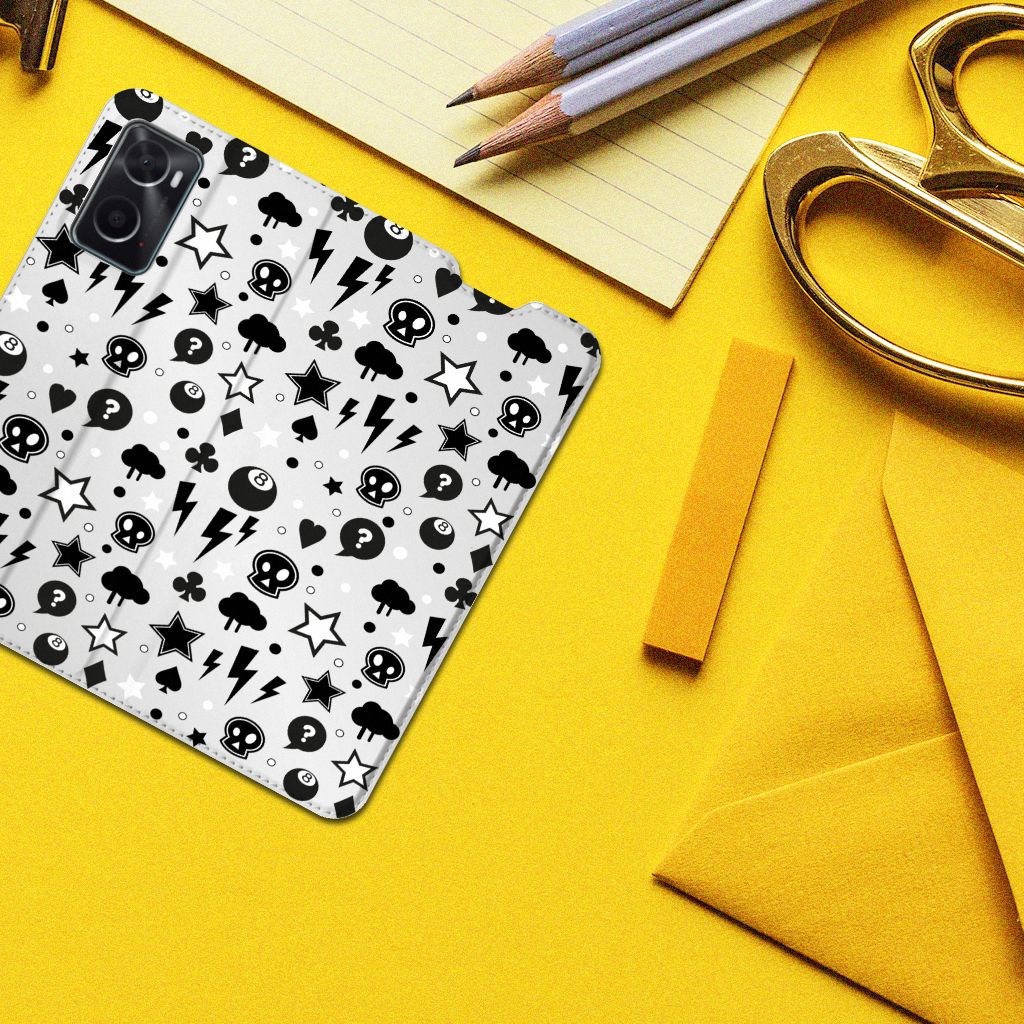 Bliksemflitsen, donderwolken, sterren en biljartballen vliegen op je af als je deze OPPO A96 | A76 Mobiel BookCase koopt. Het bijzondere Silver Punk design is van onze eigen ontwerper en vind je in geen enkel andere winkel of webshop. Ben je fan van dit soort stoere en opvallende hoesjes, dan kun je je geluk niet op als je ons assortiment smartphone accessoires bekijkt. Dit zeer populaire smartphone hoesje heeft 1 vakje en is aan alle zijden bedrukt met bliksemflitsen, donderwolken, sterren en biljartballen. Verder heeft de case een standaard en een magneet aan de binnenkant. De houder is van TPU, de buitenzijde van PU-leer. Zelfs doodshoofdjes zie je voorbijkomen in het design. Om maar aan te geven dat je met dit zilveren hoesje een krachtige smartphone accessoire te pakken hebt.