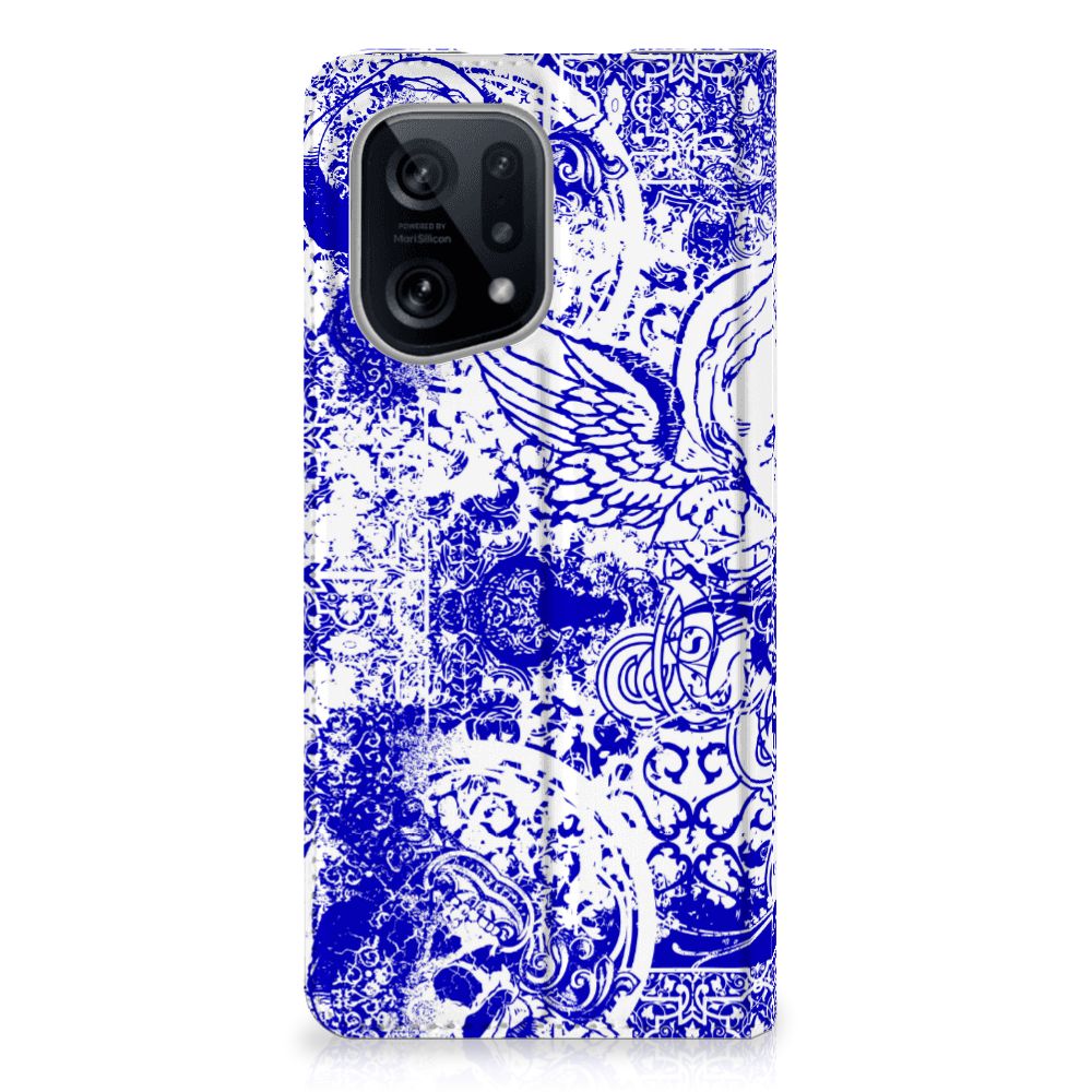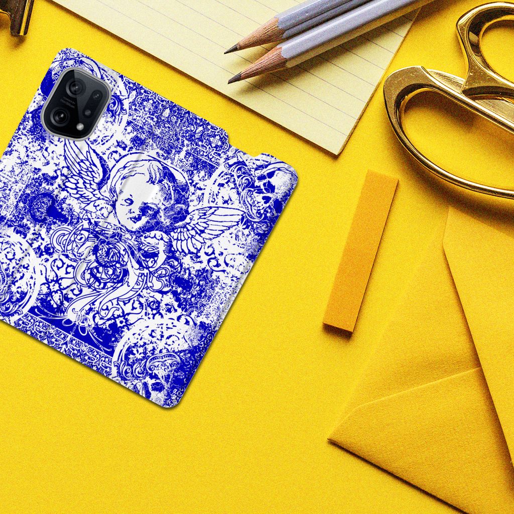 Dit ietwat duistere blauwe patroon tref je vaak aan op een bandana. Een bandana wordt om het hoofd of de hals gedragen. Een bandana is ideaal als je op de racefiets, motor of de brommer zit en jezelf wilt beschermen tegen wind, opwaaiend stof of fijn zand. Leden van motorclubs dragen dit soort bandana’s dan ook graag. Wil je jouw OPPO Find X5 optimaal beschermen tegen opwaaiend stof, zand of andere bedreigingen, dan is dit design hoesje met Angel Skull Blue design een zeer goede keus. Het design staat op een stand case. Deze Mobiel BookCase beschermt jouw telefoon aan alle kanten en beschikt over een 1 opbergvakje en een speciale standaard. Het hoesje wordt afgesloten met een magneet aan de binnenzijde. De houder aan de binnenzijde is van TPU. Alle zijden van de standcase worden bedrukt.