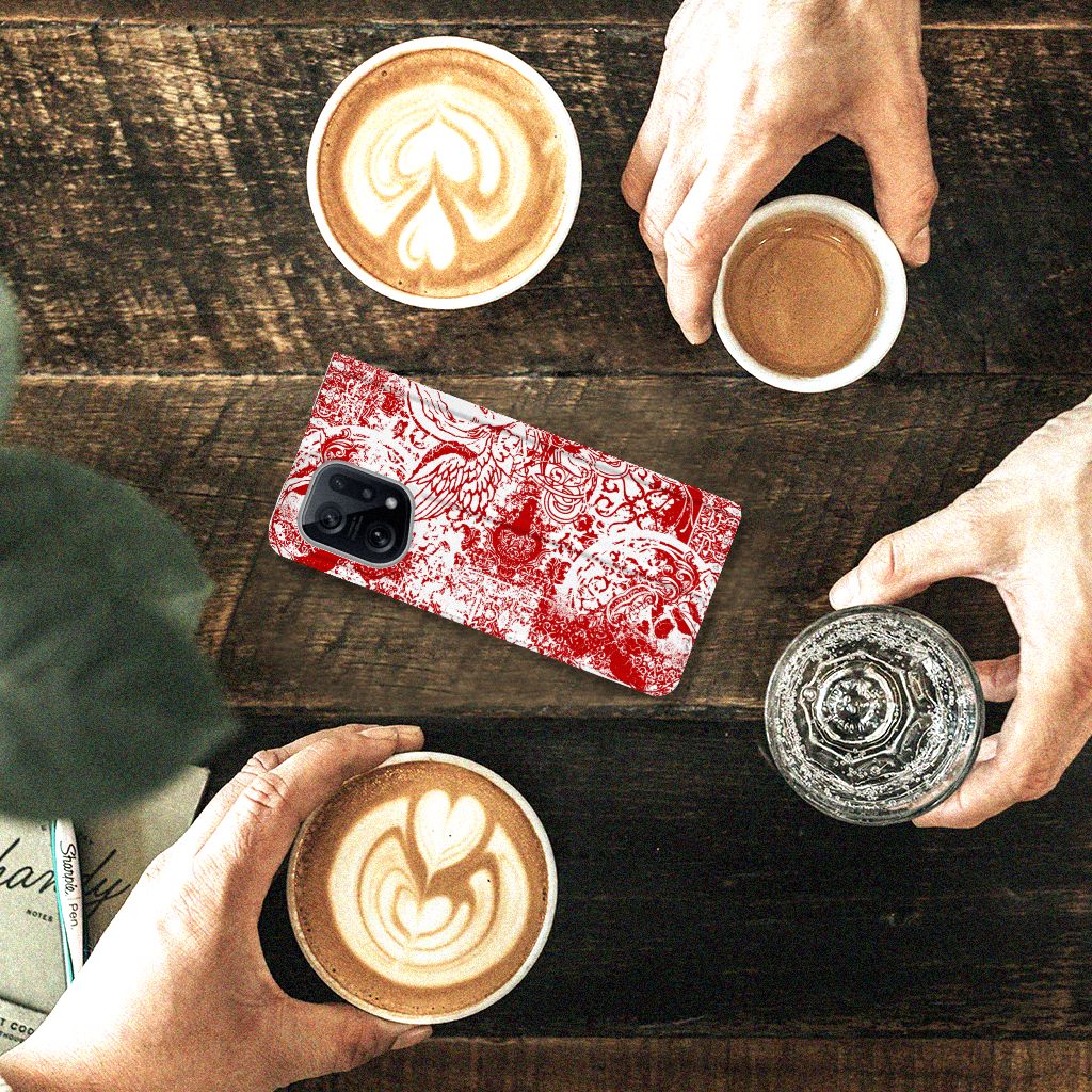 OPPO Find X5 Book Case Zwart Roze Vormen