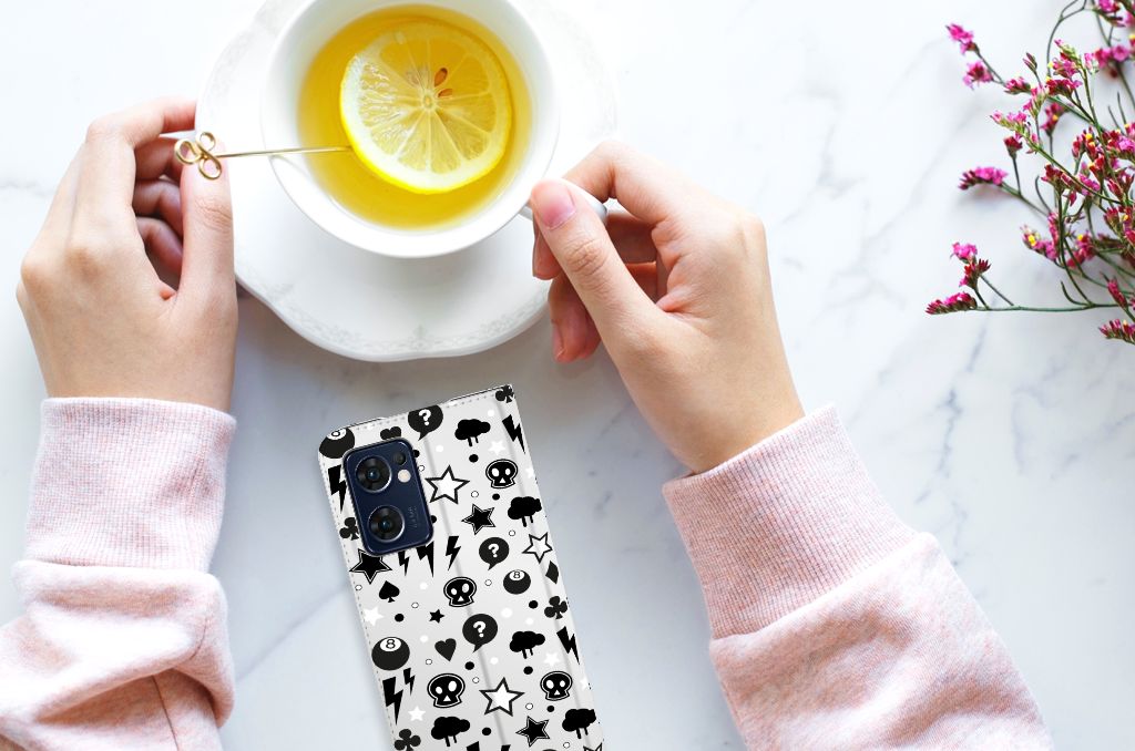 Bliksemflitsen, donderwolken, sterren en biljartballen vliegen op je af als je deze OPPO Find X5 Lite | Reno7 5G Mobiel BookCase koopt. Het bijzondere Silver Punk design is van onze eigen ontwerper en vind je in geen enkel andere winkel of webshop. Ben je fan van dit soort stoere en opvallende hoesjes, dan kun je je geluk niet op als je ons assortiment smartphone accessoires bekijkt. Dit zeer populaire smartphone hoesje heeft 1 vakje en is aan alle zijden bedrukt met bliksemflitsen, donderwolken, sterren en biljartballen. Verder heeft de case een standaard en een magneet aan de binnenkant. De houder is van TPU, de buitenzijde van PU-leer. Zelfs doodshoofdjes zie je voorbijkomen in het design. Om maar aan te geven dat je met dit zilveren hoesje een krachtige smartphone accessoire te pakken hebt.