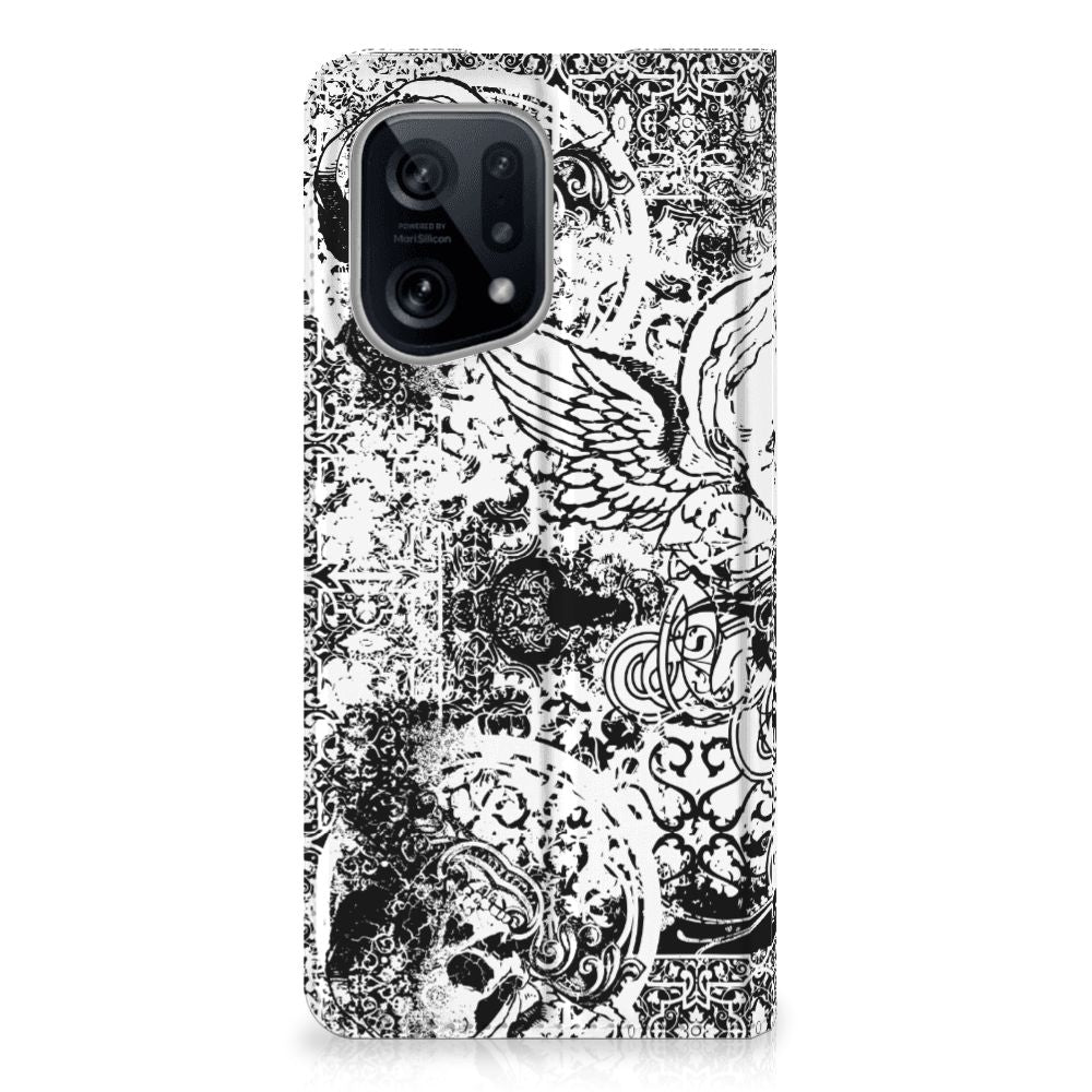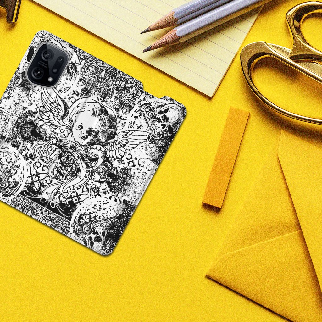 Dit mysterieuze patroon tref je vaak aan op een bandana. Een bandana is een kledingstuk dat om het hoofd of de hals wordt gedragen. Behalve als kledingstuk vindt de bandana soms toepassing als signaal. Een bandana is het eenvoudigste middel als je op de motor of de brommer zit en jezelf wilt beschermen tegen wind, opwaaiend stof of fijn zand. Leden van bekende motorclubs dragen dit kledingstuk dan ook graag, om meerdere redenen. Wil je jouw OPPO Find X5 optimaal beschermen tegen opwaaiend stof, zand of andere bedreigingen, dan is dit design hoesje met Skulls Angel een zeer goede keus. Het design staat op een stand case. Deze case beschermt jouw telefoon aan alle kanten en beschikt over een 1 opbergvakje en een speciale standaard. Het Mobiel BookCase wordt afgesloten met een magneet aan de binnenzijde. De houder aan de binnenzijde is van TPU. Alle zijden van de stand case worden bedrukt.