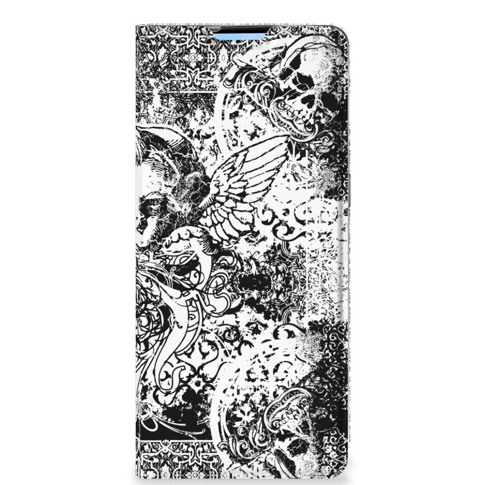 Dit mysterieuze patroon tref je vaak aan op een bandana. Een bandana is een kledingstuk dat om het hoofd of de hals wordt gedragen. Behalve als kledingstuk vindt de bandana soms toepassing als signaal. Een bandana is het eenvoudigste middel als je op de motor of de brommer zit en jezelf wilt beschermen tegen wind, opwaaiend stof of fijn zand. Leden van bekende motorclubs dragen dit kledingstuk dan ook graag, om meerdere redenen. Wil je jouw OPPO Reno4 Pro 5G optimaal beschermen tegen opwaaiend stof, zand of andere bedreigingen, dan is dit design hoesje met Skulls Angel een zeer goede keus. Het design staat op een stand case. Deze case beschermt jouw telefoon aan alle kanten en beschikt over een 1 opbergvakje en een speciale standaard. Het Mobiel BookCase wordt afgesloten met een magneet aan de binnenzijde. De houder aan de binnenzijde is van TPU. Alle zijden van de stand case worden bedrukt.
