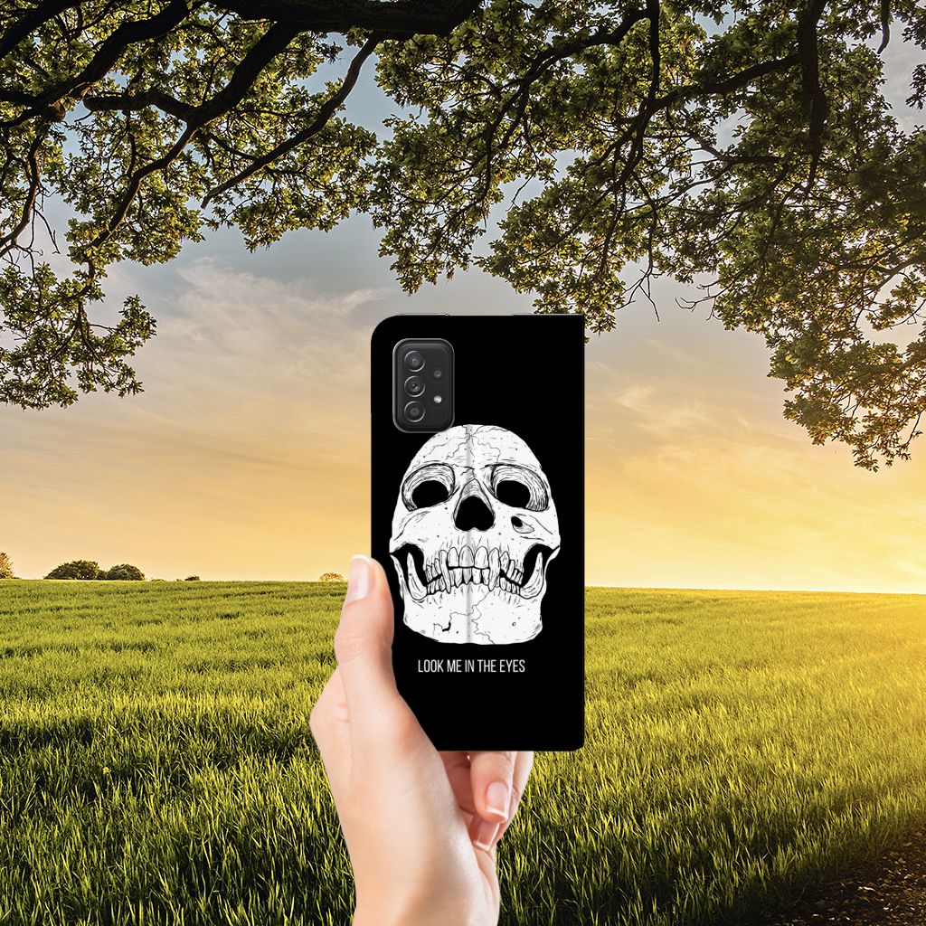 Ben je op zoek naar een uniek telefoonhoesje voor je Samsung Galaxy A03s? Dan ben je bij B2C Telecom aan het juiste adres! Speciaal voor jou hebben we dit prachtige Skull Eyes design in onze collectie hoesjes opgenomen. Het design wordt bedrukt op een Mobiel BookCase en heeft een vakje aan de binnenkant voor een pasje. Het fijne aan dit hoesje is dat je het als standaard neer kunt zetten. Hierdoor geniet je nog meer als je een filmpje aan het kijken bent op je telefoon. Het hoesje wordt afgesloten door magneten aan de binnenkant. Wil je dit design hoesje nog iets extra's geven? Voeg dan gratis je naam of een quote toe! Is dit design hoesje toch niet helemaal wat je zocht? Ontwerp dan zelf een hoesje in ons ontwerpprogramma.