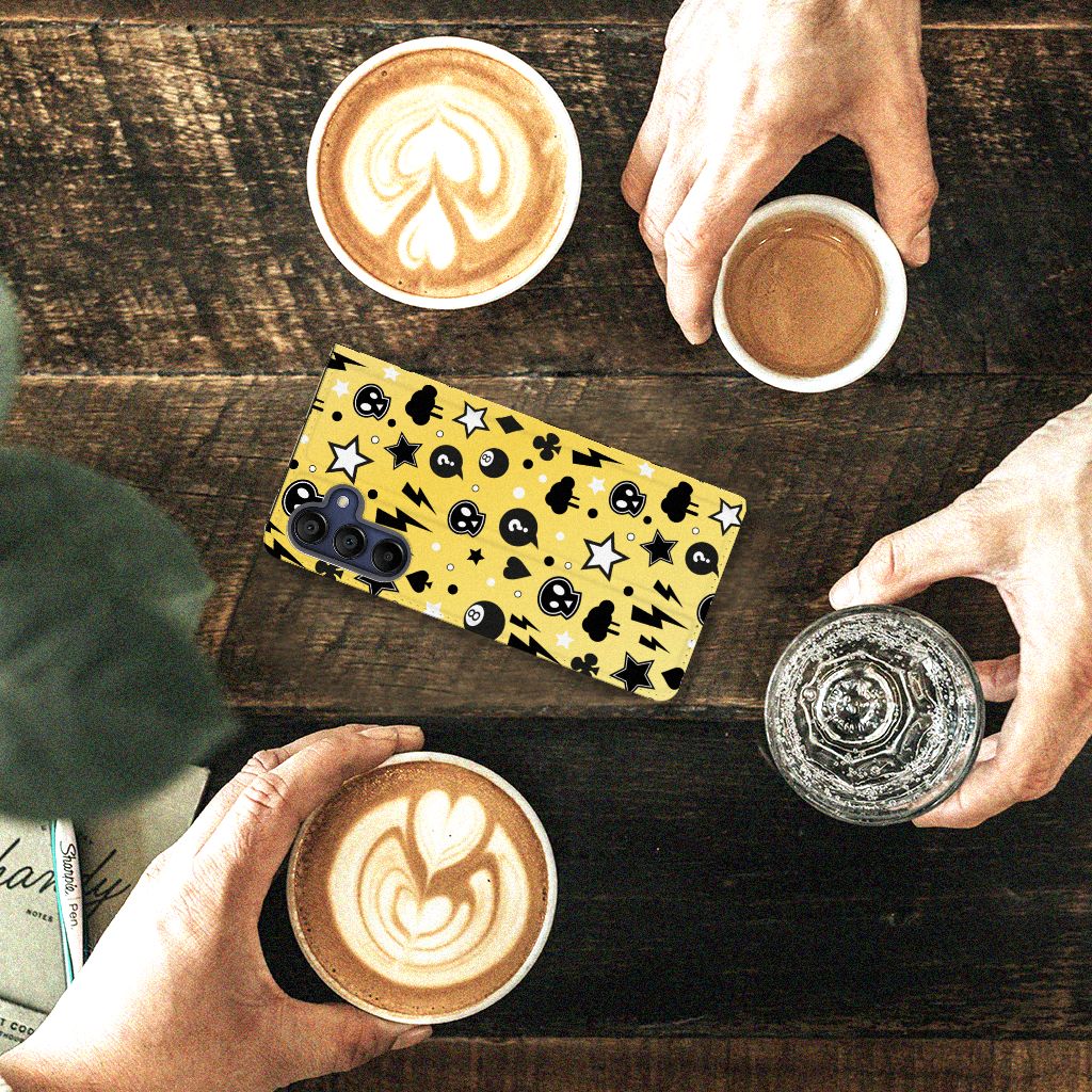 Ben je op zoek naar een uniek telefoonhoesje voor je Samsung Galaxy A15? Dan ben je bij B2C Telecom aan het juiste adres! Speciaal voor jou hebben we dit prachtige Punk Yellow design in onze collectie hoesjes opgenomen. Het design wordt bedrukt op een Mobiel BookCase en heeft een vakje aan de binnenkant voor een pasje. Het fijne aan dit hoesje is dat je het als standaard neer kunt zetten. Hierdoor geniet je nog meer als je een filmpje aan het kijken bent op je telefoon. Het hoesje wordt afgesloten door magneten aan de binnenkant. Wil je dit design hoesje nog iets extra's geven? Voeg dan gratis je naam of een quote toe! Is dit design hoesje toch niet helemaal wat je zocht? Ontwerp dan zelf een hoesje in ons ontwerpprogramma.