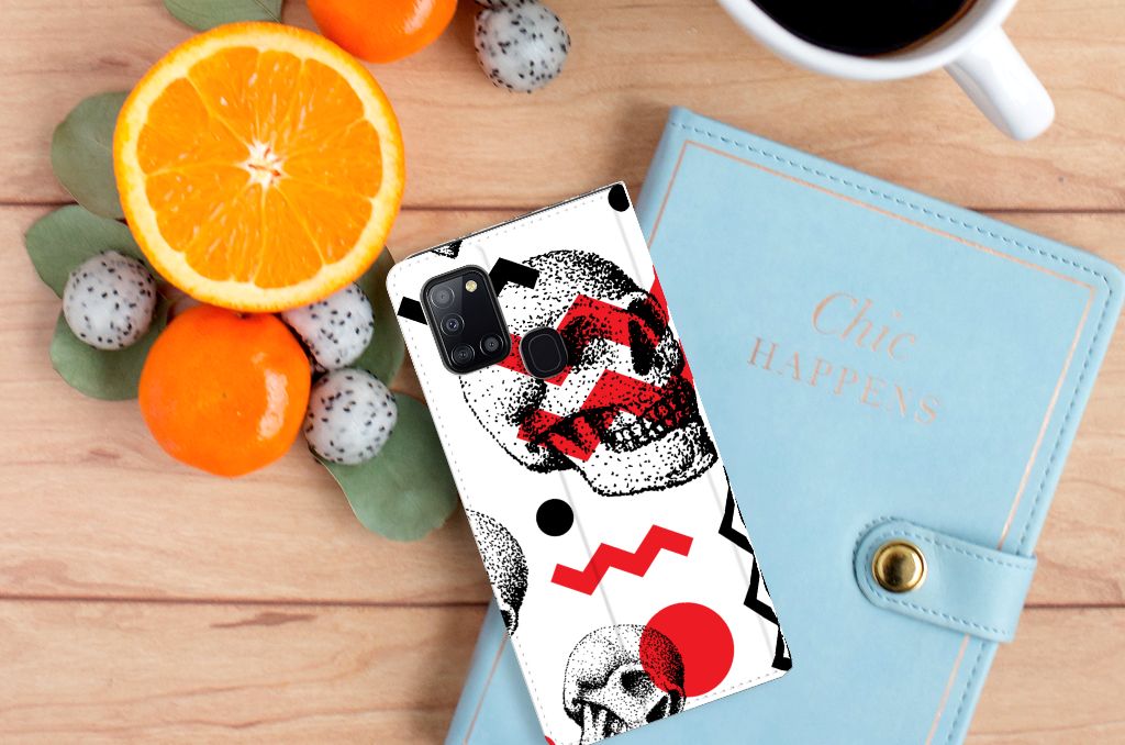 Deze mooie Samsung Galaxy A21s Mobiel BookCase met Skull Red design is een stoere en duurzame bescherming voor jouw smartphone. De rode en witte patronen komen vloeiend samen met de schedel worden op alle zijden van de case bedrukt. Het printen doen we in eigen beheer, zodat we zeker weten dat het design van schedel en rode en witte patronen van uitstekende kwaliteit is. Het smartphone hoesje met schedel en rode en witte patronen is zeer multifunctioneel. Een stand hoesje met schedel en rode en witte patronen is perfect op maat gemaakt en heeft een vakje voor een pasje. Daarnaast is de magneet aan de binnenkant zeer veilig. De case sluit perfect af. De houder aan de binnenzijde is van tpu. Kijk voor andere patronen samen met schedels in ons assortiment design hoesjes of ontwerp je eigen unieke case!