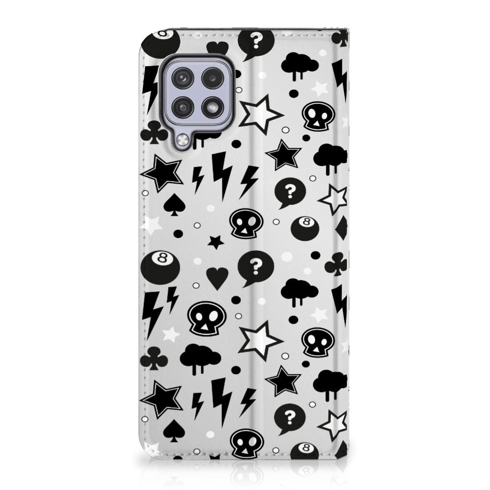 Bliksemflitsen, donderwolken, sterren en biljartballen vliegen op je af als je deze Samsung Galaxy A22 4G | M22 Mobiel BookCase koopt. Het bijzondere Silver Punk design is van onze eigen ontwerper en vind je in geen enkel andere winkel of webshop. Ben je fan van dit soort stoere en opvallende hoesjes, dan kun je je geluk niet op als je ons assortiment smartphone accessoires bekijkt. Dit zeer populaire smartphone hoesje heeft 1 vakje en is aan alle zijden bedrukt met bliksemflitsen, donderwolken, sterren en biljartballen. Verder heeft de case een standaard en een magneet aan de binnenkant. De houder is van TPU, de buitenzijde van PU-leer. Zelfs doodshoofdjes zie je voorbijkomen in het design. Om maar aan te geven dat je met dit zilveren hoesje een krachtige smartphone accessoire te pakken hebt.
