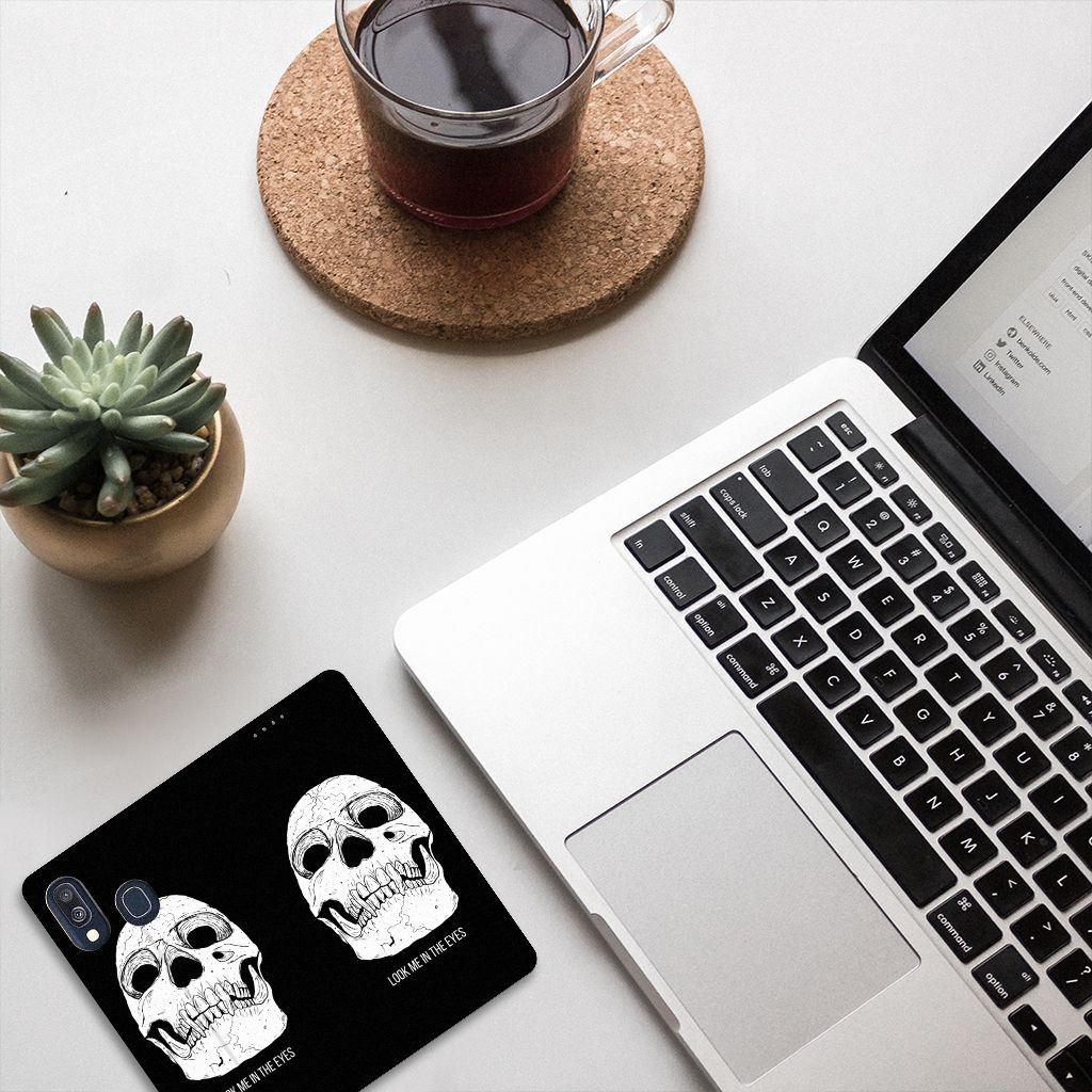Ben je op zoek naar een uniek telefoonhoesje voor je Samsung Galaxy A40? Dan ben je bij B2C Telecom aan het juiste adres! Speciaal voor jou hebben we dit prachtige Skull Eyes design in onze collectie hoesjes opgenomen. Het design wordt bedrukt op een Mobiel BookCase en heeft een vakje aan de binnenkant voor een pasje. Het fijne aan dit hoesje is dat je het als standaard neer kunt zetten. Hierdoor geniet je nog meer als je een filmpje aan het kijken bent op je telefoon. Het hoesje wordt afgesloten door magneten aan de binnenkant. Wil je dit design hoesje nog iets extra's geven? Voeg dan gratis je naam of een quote toe! Is dit design hoesje toch niet helemaal wat je zocht? Ontwerp dan zelf een hoesje in ons ontwerpprogramma.