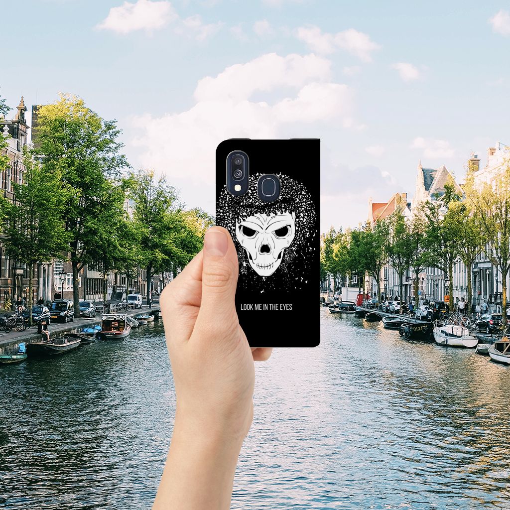 Ben je op zoek naar een uniek telefoonhoesje voor je Samsung Galaxy A40? Dan ben je bij B2C Telecom aan het juiste adres! Speciaal voor jou hebben we dit prachtige Skull Hair design in onze collectie hoesjes opgenomen. Het design wordt bedrukt op een Mobiel BookCase en heeft een vakje aan de binnenkant voor een pasje. Het fijne aan dit hoesje is dat je het als standaard neer kunt zetten. Hierdoor geniet je nog meer als je een filmpje aan het kijken bent op je telefoon. Het hoesje wordt afgesloten door magneten aan de binnenkant. Wil je dit design hoesje nog iets extra's geven? Voeg dan gratis je naam of een quote toe! Is dit design hoesje toch niet helemaal wat je zocht? Ontwerp dan zelf een hoesje in ons ontwerpprogramma.