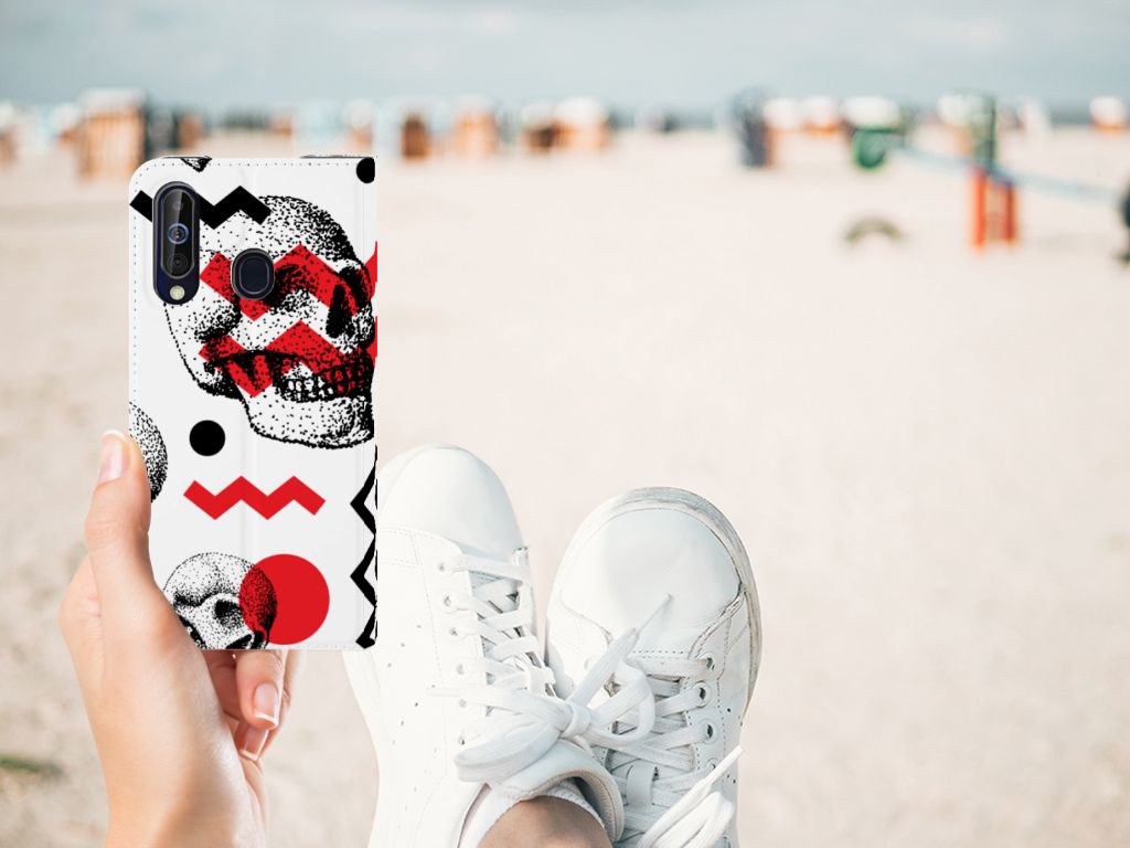 Deze mooie Samsung Galaxy A60 Mobiel BookCase met Skull Red design is een stoere en duurzame bescherming voor jouw smartphone. De rode en witte patronen komen vloeiend samen met de schedel worden op alle zijden van de case bedrukt. Het printen doen we in eigen beheer, zodat we zeker weten dat het design van schedel en rode en witte patronen van uitstekende kwaliteit is. Het smartphone hoesje met schedel en rode en witte patronen is zeer multifunctioneel. Een stand hoesje met schedel en rode en witte patronen is perfect op maat gemaakt en heeft een vakje voor een pasje. Daarnaast is de magneet aan de binnenkant zeer veilig. De case sluit perfect af. De houder aan de binnenzijde is van tpu. Kijk voor andere patronen samen met schedels in ons assortiment design hoesjes of ontwerp je eigen unieke case!