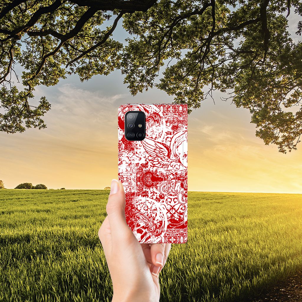 Altijd al een mysterieus patroon in de vorm van een bandana op een design hoesje willen hebben? Dit stoere Samsung Galaxy A71 Mobiel BookCase met het design Angel Skull Red is het ideale kledingstuk voor jouw telefoon. Een bandana is het eenvoudigste middel als je op de motor of de brommer zit en jezelf wilt beschermen tegen wind, opwaaiend stof of fijn zand. Leden van bekende motorclubs dragen dit dan ook graag. Wil jouw telefoon optimaal beschermen tegen opwaaiend stof, zand of andere bedreigingen, dan is dit design hoesje met bandana een zeer goede keus. Deze stand case beschermt jouw telefoon aan alle kanten en beschikt over 1 opbergvakje en een speciale standaard. Het hoesje wordt afgesloten met een magneet aan de binnenzijde. De houder aan de binnenzijde is van TPU. Ga voor deze mooie standcase hoes met bandana print.