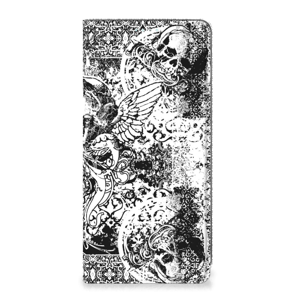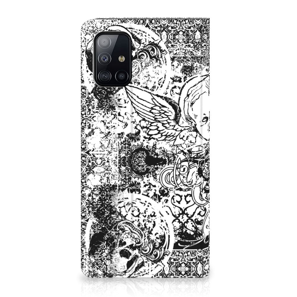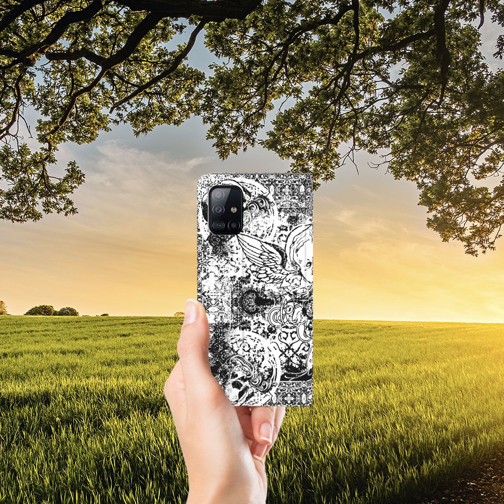 Dit mysterieuze patroon tref je vaak aan op een bandana. Een bandana is een kledingstuk dat om het hoofd of de hals wordt gedragen. Behalve als kledingstuk vindt de bandana soms toepassing als signaal. Een bandana is het eenvoudigste middel als je op de motor of de brommer zit en jezelf wilt beschermen tegen wind, opwaaiend stof of fijn zand. Leden van bekende motorclubs dragen dit kledingstuk dan ook graag, om meerdere redenen. Wil je jouw Samsung Galaxy A71 optimaal beschermen tegen opwaaiend stof, zand of andere bedreigingen, dan is dit design hoesje met Skulls Angel een zeer goede keus. Het design staat op een stand case. Deze case beschermt jouw telefoon aan alle kanten en beschikt over een 1 opbergvakje en een speciale standaard. Het Mobiel BookCase wordt afgesloten met een magneet aan de binnenzijde. De houder aan de binnenzijde is van TPU. Alle zijden van de stand case worden bedrukt.