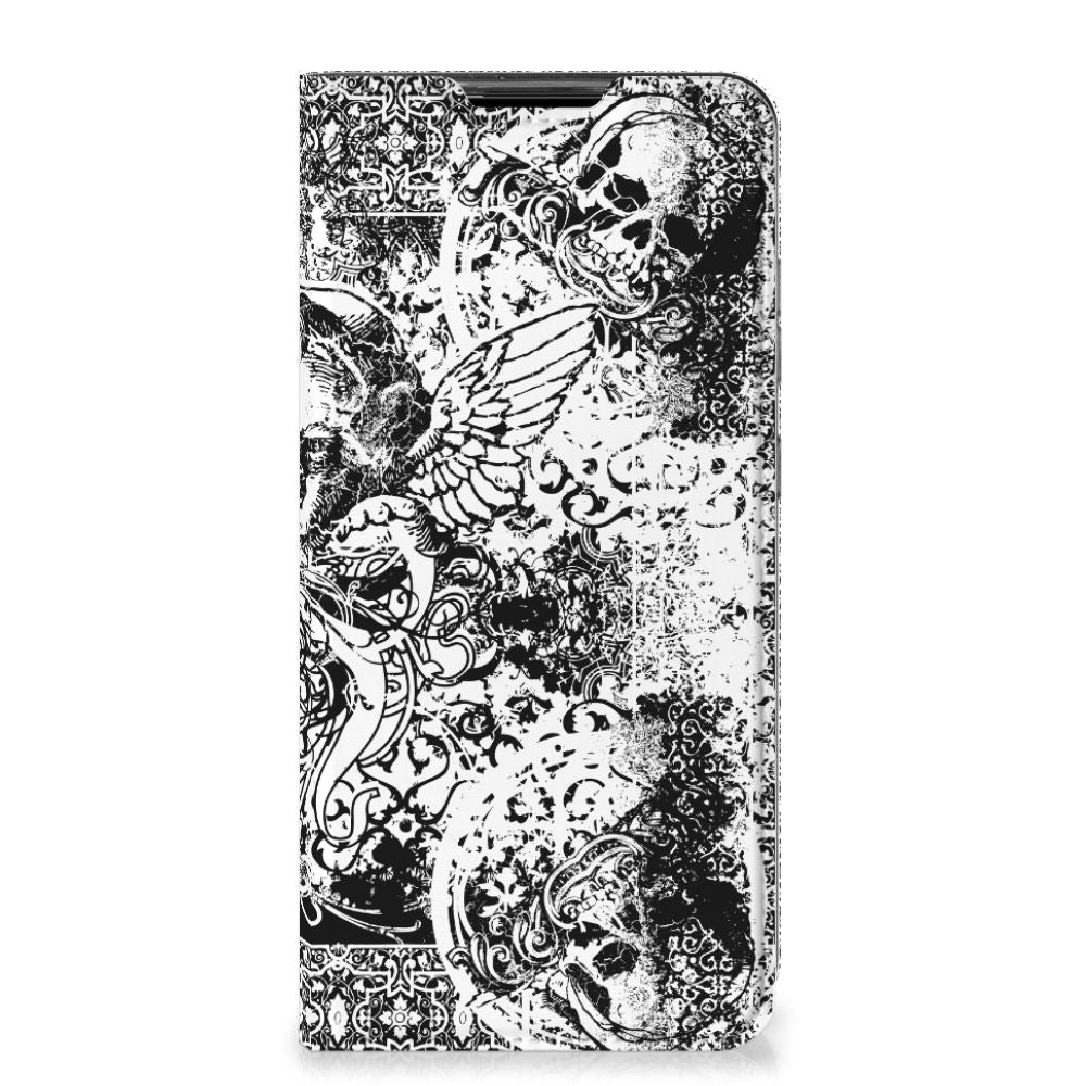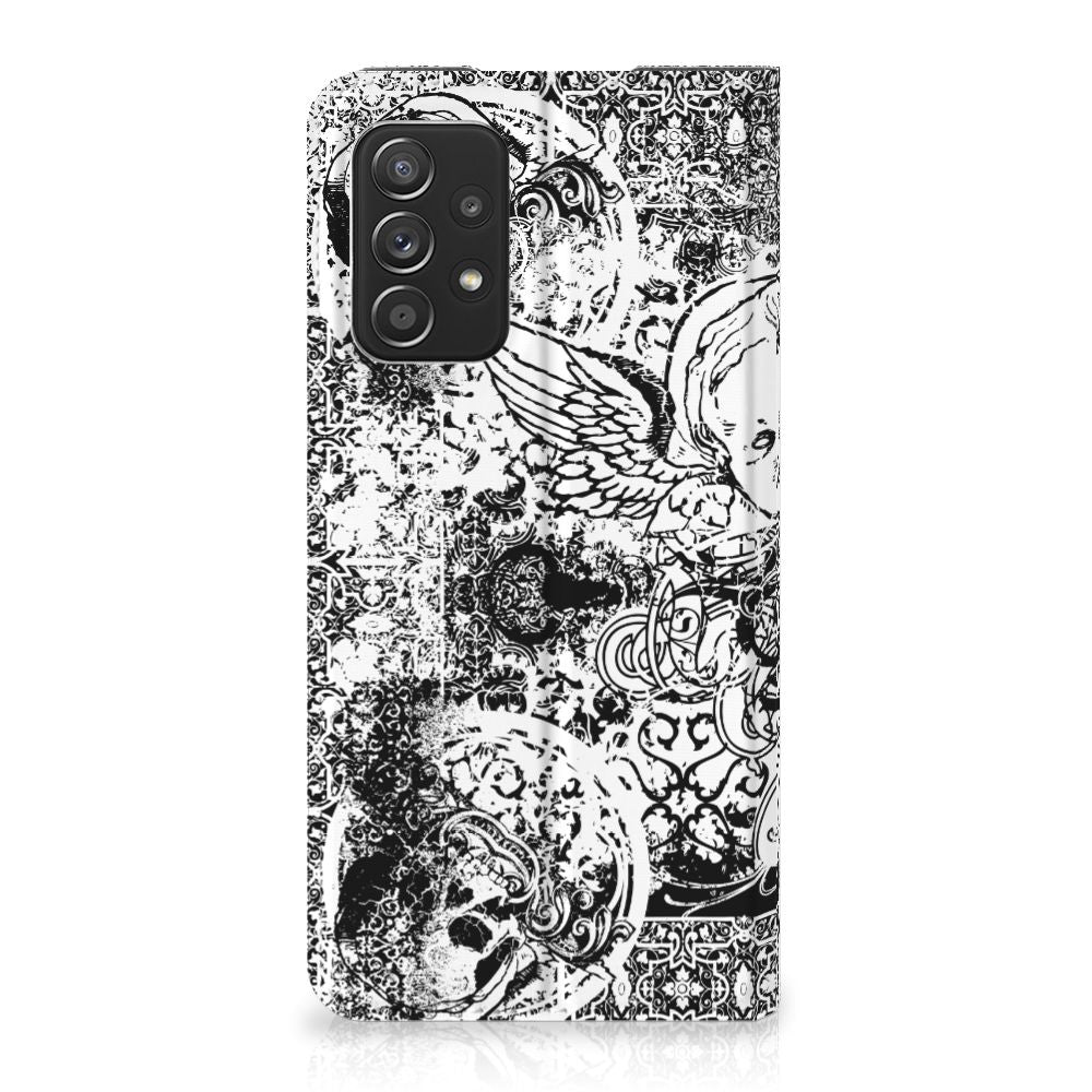 Dit mysterieuze patroon tref je vaak aan op een bandana. Een bandana is een kledingstuk dat om het hoofd of de hals wordt gedragen. Behalve als kledingstuk vindt de bandana soms toepassing als signaal. Een bandana is het eenvoudigste middel als je op de motor of de brommer zit en jezelf wilt beschermen tegen wind, opwaaiend stof of fijn zand. Leden van bekende motorclubs dragen dit kledingstuk dan ook graag, om meerdere redenen. Wil je jouw Samsung Galaxy A72 (5G/4G) optimaal beschermen tegen opwaaiend stof, zand of andere bedreigingen, dan is dit design hoesje met Skulls Angel een zeer goede keus. Het design staat op een stand case. Deze case beschermt jouw telefoon aan alle kanten en beschikt over een 1 opbergvakje en een speciale standaard. Het Mobiel BookCase wordt afgesloten met een magneet aan de binnenzijde. De houder aan de binnenzijde is van TPU. Alle zijden van de stand case worden bedrukt.