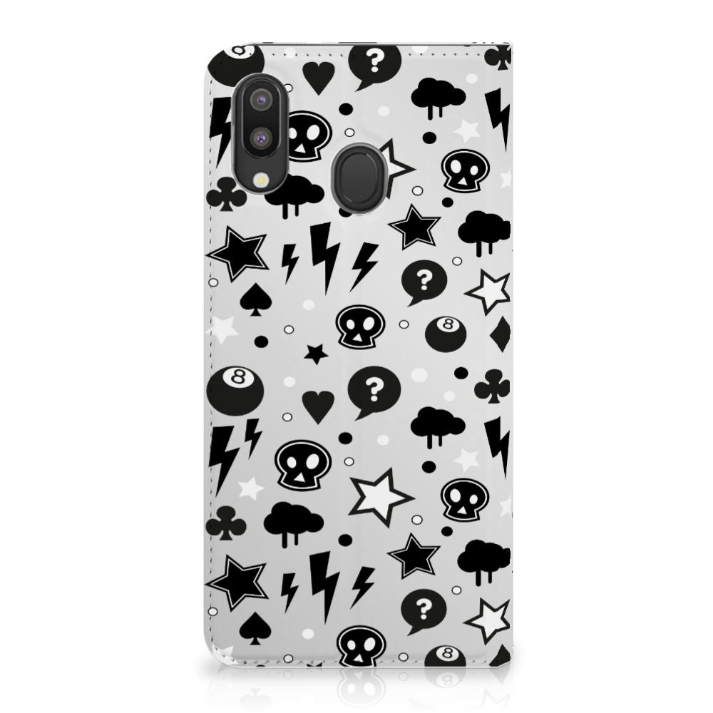 Mobiel BookCase Samsung Galaxy M20 Angel Skull Blauw