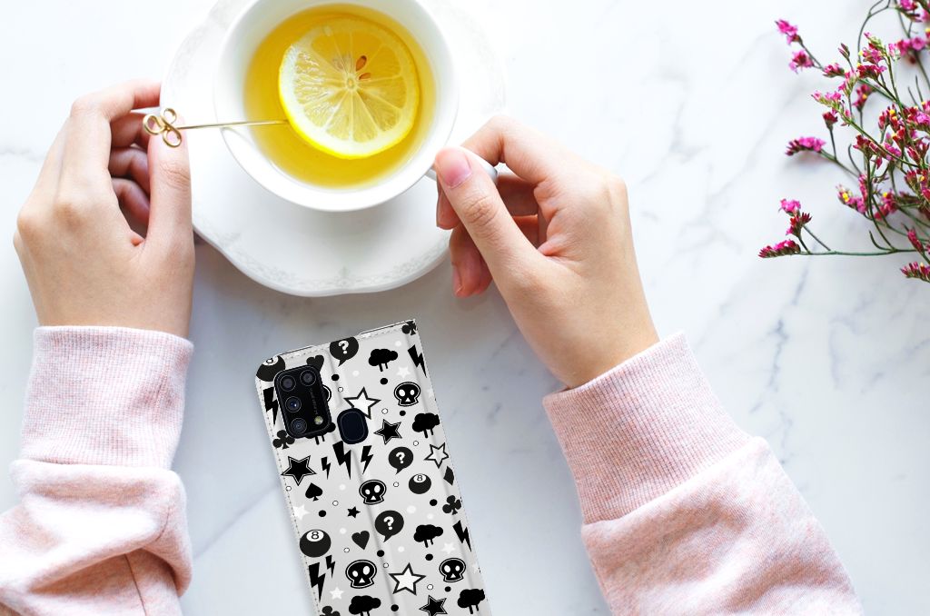Samsung Galaxy M31 Bookcase Marmer Wit Zwart - Origineel Cadeau Man