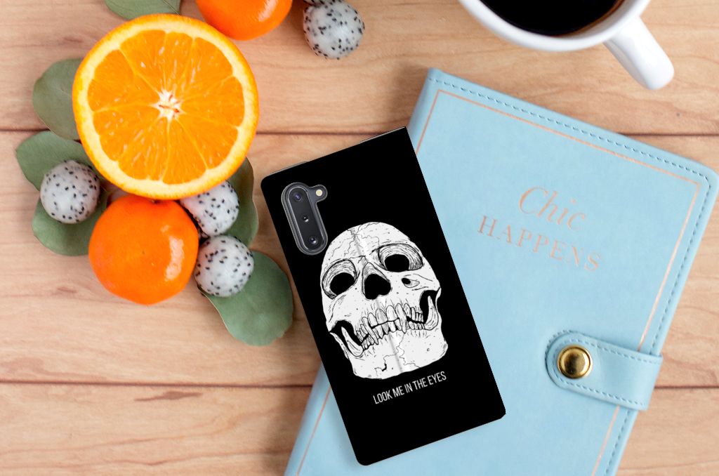 Ben je op zoek naar een uniek telefoonhoesje voor je Samsung Galaxy Note 10? Dan ben je bij B2C Telecom aan het juiste adres! Speciaal voor jou hebben we dit prachtige Skull Eyes design in onze collectie hoesjes opgenomen. Het design wordt bedrukt op een Mobiel BookCase en heeft een vakje aan de binnenkant voor een pasje. Het fijne aan dit hoesje is dat je het als standaard neer kunt zetten. Hierdoor geniet je nog meer als je een filmpje aan het kijken bent op je telefoon. Het hoesje wordt afgesloten door magneten aan de binnenkant. Wil je dit design hoesje nog iets extra's geven? Voeg dan gratis je naam of een quote toe! Is dit design hoesje toch niet helemaal wat je zocht? Ontwerp dan zelf een hoesje in ons ontwerpprogramma.