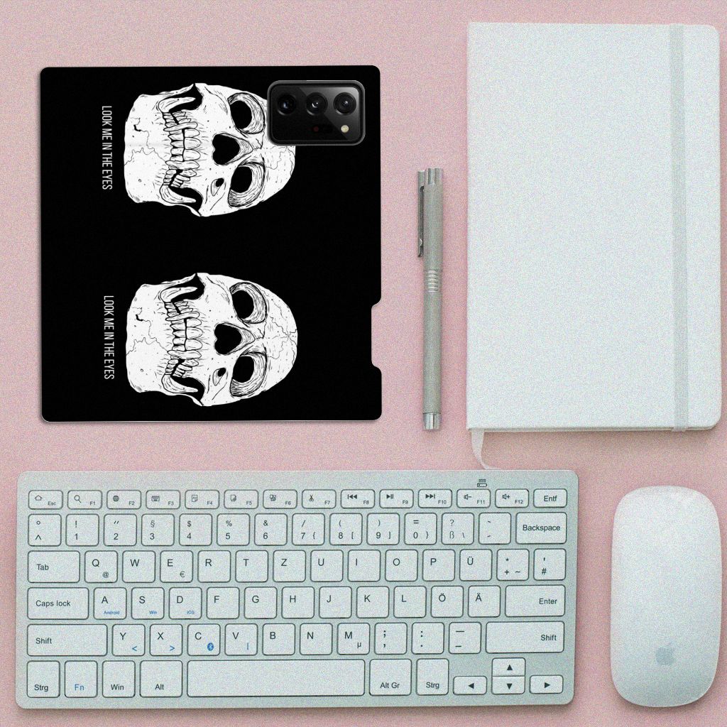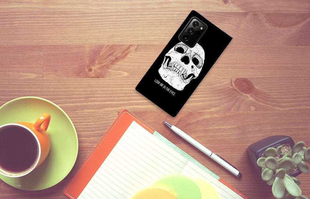 Ben je op zoek naar een uniek telefoonhoesje voor je Samsung Galaxy Note 20 Ultra? Dan ben je bij B2C Telecom aan het juiste adres! Speciaal voor jou hebben we dit prachtige Skull Eyes design in onze collectie hoesjes opgenomen. Het design wordt bedrukt op een Mobiel BookCase en heeft een vakje aan de binnenkant voor een pasje. Het fijne aan dit hoesje is dat je het als standaard neer kunt zetten. Hierdoor geniet je nog meer als je een filmpje aan het kijken bent op je telefoon. Het hoesje wordt afgesloten door magneten aan de binnenkant. Wil je dit design hoesje nog iets extra's geven? Voeg dan gratis je naam of een quote toe! Is dit design hoesje toch niet helemaal wat je zocht? Ontwerp dan zelf een hoesje in ons ontwerpprogramma.