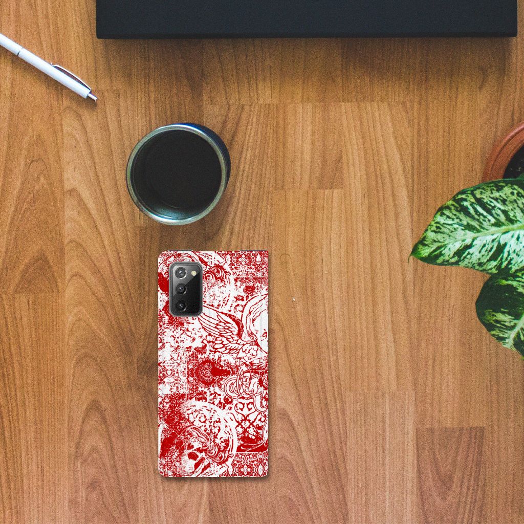 Altijd al een mysterieus patroon in de vorm van een bandana op een design hoesje willen hebben? Dit stoere Samsung Galaxy Note20 Mobiel BookCase met het design Angel Skull Red is het ideale kledingstuk voor jouw telefoon. Een bandana is het eenvoudigste middel als je op de motor of de brommer zit en jezelf wilt beschermen tegen wind, opwaaiend stof of fijn zand. Leden van bekende motorclubs dragen dit dan ook graag. Wil jouw telefoon optimaal beschermen tegen opwaaiend stof, zand of andere bedreigingen, dan is dit design hoesje met bandana een zeer goede keus. Deze stand case beschermt jouw telefoon aan alle kanten en beschikt over 1 opbergvakje en een speciale standaard. Het hoesje wordt afgesloten met een magneet aan de binnenzijde. De houder aan de binnenzijde is van TPU. Ga voor deze mooie standcase hoes met bandana print.