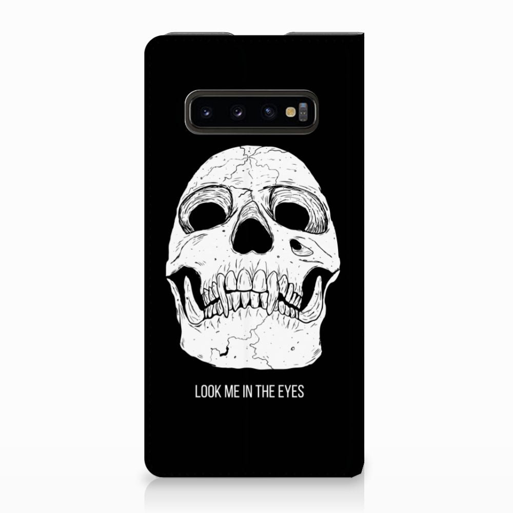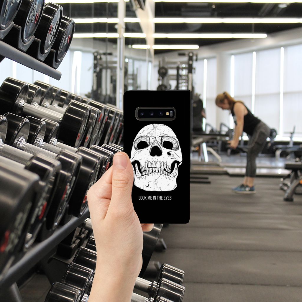 Ben je op zoek naar een uniek telefoonhoesje voor je Samsung Galaxy S10 Plus? Dan ben je bij B2C Telecom aan het juiste adres! Speciaal voor jou hebben we dit prachtige Skull Eyes design in onze collectie hoesjes opgenomen. Het design wordt bedrukt op een Mobiel BookCase en heeft een vakje aan de binnenkant voor een pasje. Het fijne aan dit hoesje is dat je het als standaard neer kunt zetten. Hierdoor geniet je nog meer als je een filmpje aan het kijken bent op je telefoon. Het hoesje wordt afgesloten door magneten aan de binnenkant. Wil je dit design hoesje nog iets extra's geven? Voeg dan gratis je naam of een quote toe! Is dit design hoesje toch niet helemaal wat je zocht? Ontwerp dan zelf een hoesje in ons ontwerpprogramma.
