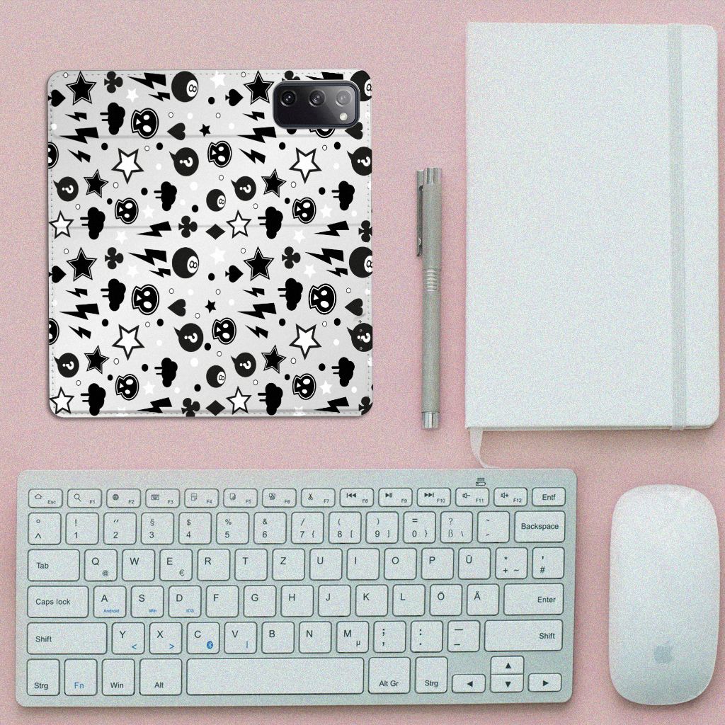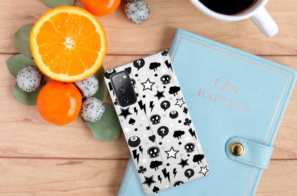 Bliksemflitsen, donderwolken, sterren en biljartballen vliegen op je af als je deze Samsung Galaxy S20 FE Mobiel BookCase koopt. Het bijzondere Silver Punk design is van onze eigen ontwerper en vind je in geen enkel andere winkel of webshop. Ben je fan van dit soort stoere en opvallende hoesjes, dan kun je je geluk niet op als je ons assortiment smartphone accessoires bekijkt. Dit zeer populaire smartphone hoesje heeft 1 vakje en is aan alle zijden bedrukt met bliksemflitsen, donderwolken, sterren en biljartballen. Verder heeft de case een standaard en een magneet aan de binnenkant. De houder is van TPU, de buitenzijde van PU-leer. Zelfs doodshoofdjes zie je voorbijkomen in het design. Om maar aan te geven dat je met dit zilveren hoesje een krachtige smartphone accessoire te pakken hebt.