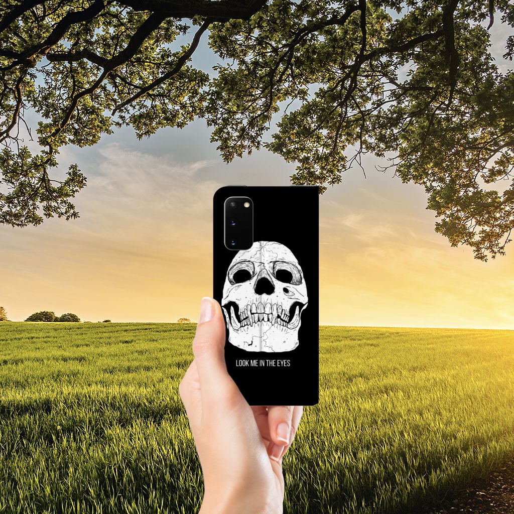 Ben je op zoek naar een uniek telefoonhoesje voor je Samsung Galaxy S20? Dan ben je bij B2C Telecom aan het juiste adres! Speciaal voor jou hebben we dit prachtige Skull Eyes design in onze collectie hoesjes opgenomen. Het design wordt bedrukt op een Mobiel BookCase en heeft een vakje aan de binnenkant voor een pasje. Het fijne aan dit hoesje is dat je het als standaard neer kunt zetten. Hierdoor geniet je nog meer als je een filmpje aan het kijken bent op je telefoon. Het hoesje wordt afgesloten door magneten aan de binnenkant. Wil je dit design hoesje nog iets extra's geven? Voeg dan gratis je naam of een quote toe! Is dit design hoesje toch niet helemaal wat je zocht? Ontwerp dan zelf een hoesje in ons ontwerpprogramma.