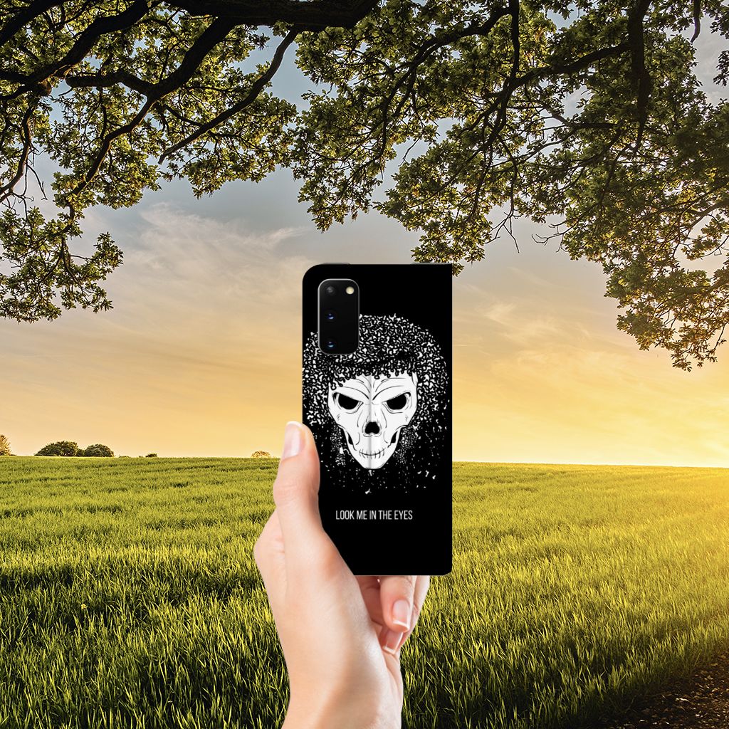 Ben je op zoek naar een uniek telefoonhoesje voor je Samsung Galaxy S20? Dan ben je bij B2C Telecom aan het juiste adres! Speciaal voor jou hebben we dit prachtige Skull Hair design in onze collectie hoesjes opgenomen. Het design wordt bedrukt op een Mobiel BookCase en heeft een vakje aan de binnenkant voor een pasje. Het fijne aan dit hoesje is dat je het als standaard neer kunt zetten. Hierdoor geniet je nog meer als je een filmpje aan het kijken bent op je telefoon. Het hoesje wordt afgesloten door magneten aan de binnenkant. Wil je dit design hoesje nog iets extra's geven? Voeg dan gratis je naam of een quote toe! Is dit design hoesje toch niet helemaal wat je zocht? Ontwerp dan zelf een hoesje in ons ontwerpprogramma.