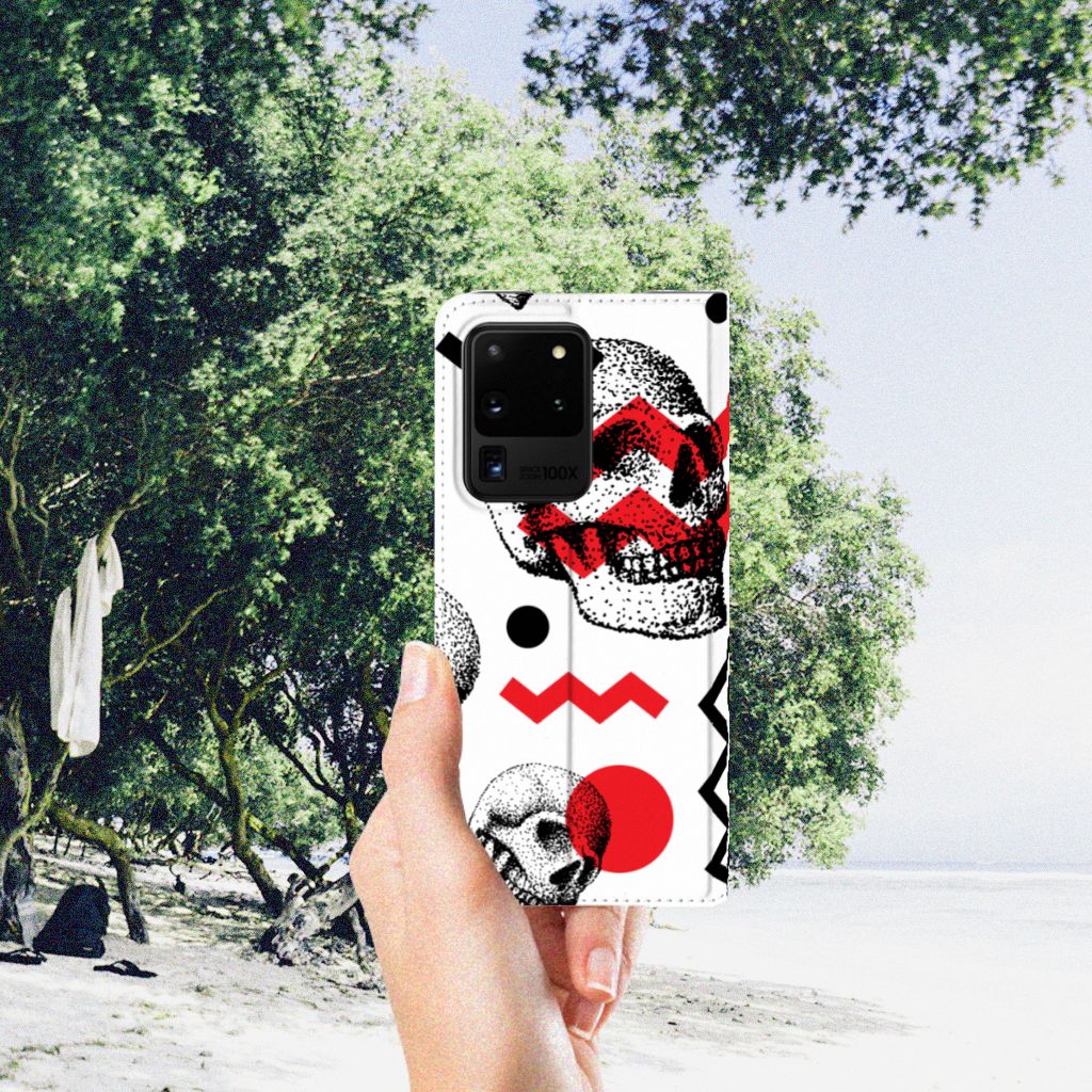 Deze mooie Samsung Galaxy S20 Ultra Mobiel BookCase met Skull Red design is een stoere en duurzame bescherming voor jouw smartphone. De rode en witte patronen komen vloeiend samen met de schedel worden op alle zijden van de case bedrukt. Het printen doen we in eigen beheer, zodat we zeker weten dat het design van schedel en rode en witte patronen van uitstekende kwaliteit is. Het smartphone hoesje met schedel en rode en witte patronen is zeer multifunctioneel. Een stand hoesje met schedel en rode en witte patronen is perfect op maat gemaakt en heeft een vakje voor een pasje. Daarnaast is de magneet aan de binnenkant zeer veilig. De case sluit perfect af. De houder aan de binnenzijde is van tpu. Kijk voor andere patronen samen met schedels in ons assortiment design hoesjes of ontwerp je eigen unieke case!
