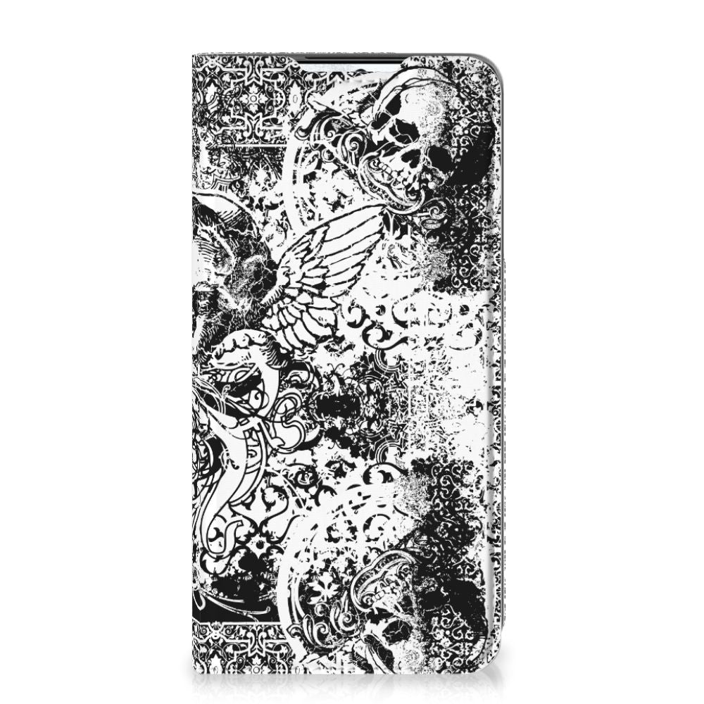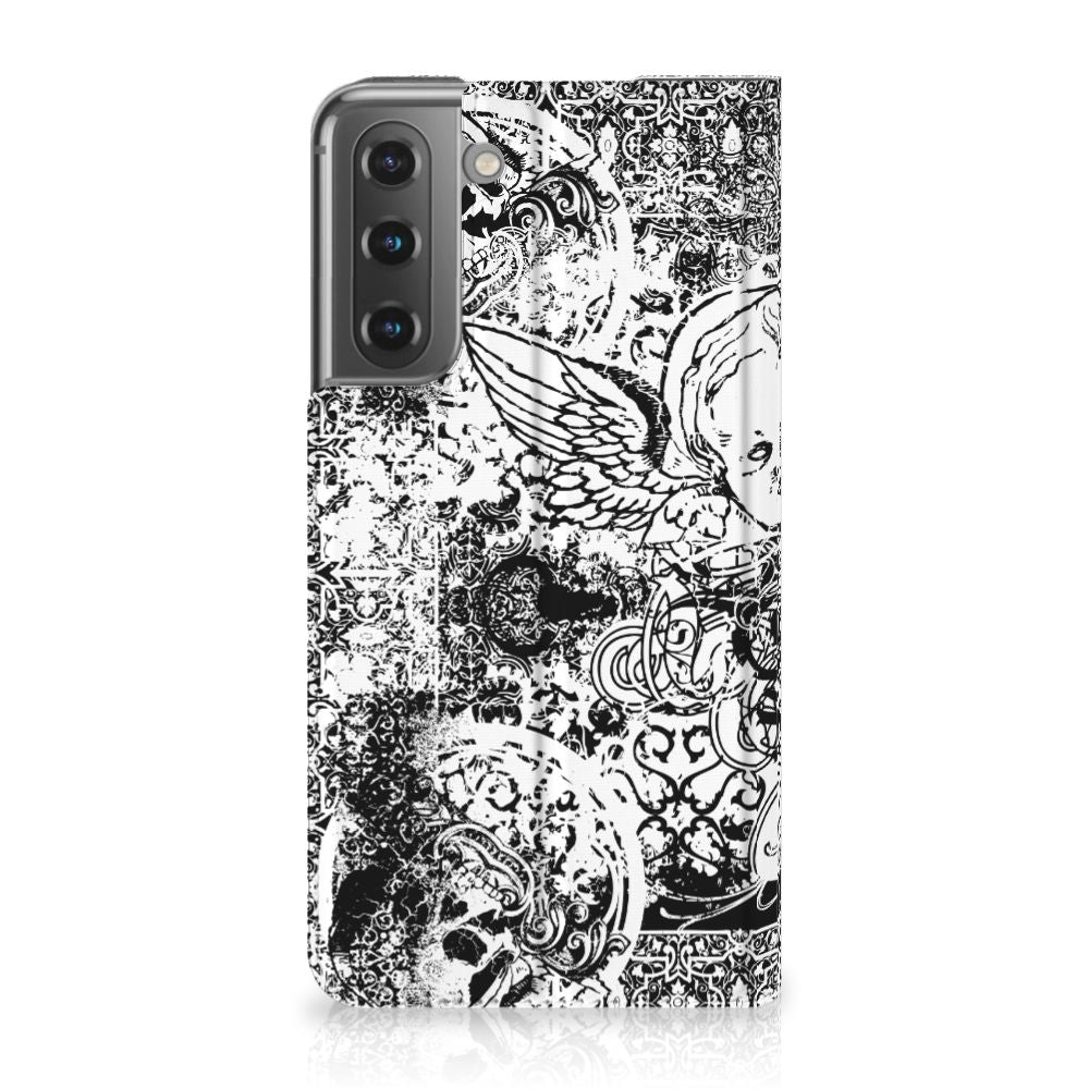 Dit mysterieuze patroon tref je vaak aan op een bandana. Een bandana is een kledingstuk dat om het hoofd of de hals wordt gedragen. Behalve als kledingstuk vindt de bandana soms toepassing als signaal. Een bandana is het eenvoudigste middel als je op de motor of de brommer zit en jezelf wilt beschermen tegen wind, opwaaiend stof of fijn zand. Leden van bekende motorclubs dragen dit kledingstuk dan ook graag, om meerdere redenen. Wil je jouw Samsung Galaxy S21 FE optimaal beschermen tegen opwaaiend stof, zand of andere bedreigingen, dan is dit design hoesje met Skulls Angel een zeer goede keus. Het design staat op een stand case. Deze case beschermt jouw telefoon aan alle kanten en beschikt over een 1 opbergvakje en een speciale standaard. Het Mobiel BookCase wordt afgesloten met een magneet aan de binnenzijde. De houder aan de binnenzijde is van TPU. Alle zijden van de stand case worden bedrukt.