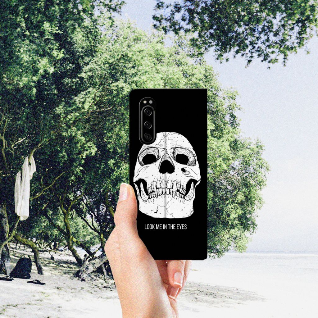 Ben je op zoek naar een uniek telefoonhoesje voor je Sony Xperia 5? Dan ben je bij B2C Telecom aan het juiste adres! Speciaal voor jou hebben we dit prachtige Skull Eyes design in onze collectie hoesjes opgenomen. Het design wordt bedrukt op een Mobiel BookCase en heeft een vakje aan de binnenkant voor een pasje. Het fijne aan dit hoesje is dat je het als standaard neer kunt zetten. Hierdoor geniet je nog meer als je een filmpje aan het kijken bent op je telefoon. Het hoesje wordt afgesloten door magneten aan de binnenkant. Wil je dit design hoesje nog iets extra's geven? Voeg dan gratis je naam of een quote toe! Is dit design hoesje toch niet helemaal wat je zocht? Ontwerp dan zelf een hoesje in ons ontwerpprogramma.