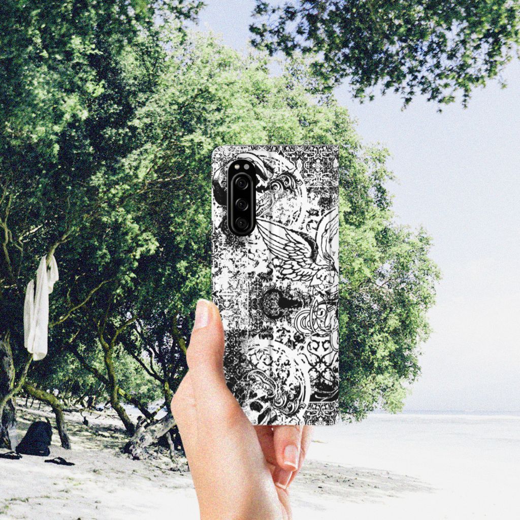 Mobiel BookCase Sony Xperia 5 Angel Skull Blauw
