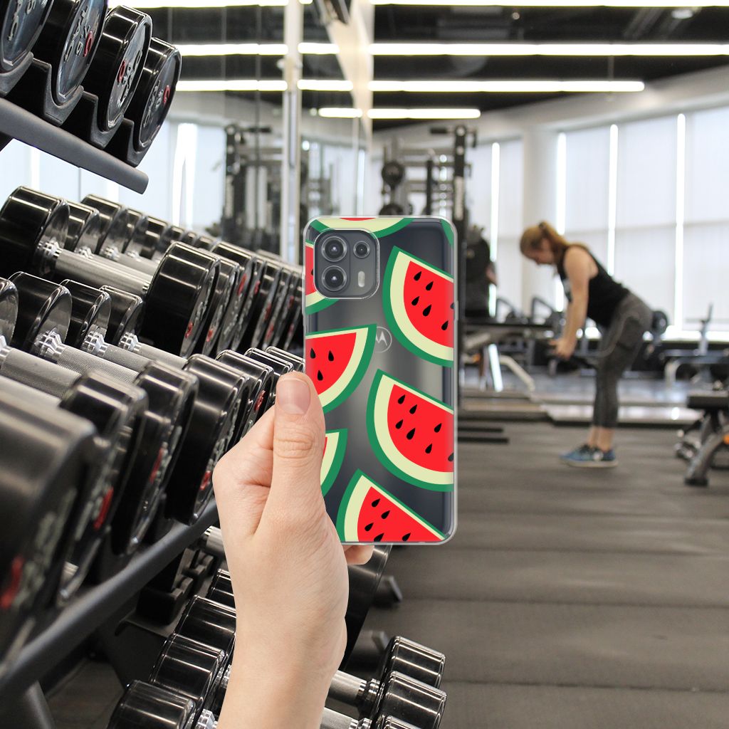 Watermeloenen zijn uitstekende dorstlessers, misschien dat je daarom juist in de zomermaanden extra enthousiast raakt van dit design hoesje Watermelons. Jij blijft gezond als je zo nu en dan een watermeloen neemt, jouw smartphone blijft in tact als je er deze Motorola Edge 20 Lite Siliconen Case omheen doet. Deze tpu case wordt alleen aan de bovenkant bedrukt met watermeloenen is zeer flexibel. De randen van het hoesje blijven transparant. Je kunt ook kiezen voor andere soorten fruit op je hoesje. Kijk maar eens naar onze andere design hoesjes op onze website.