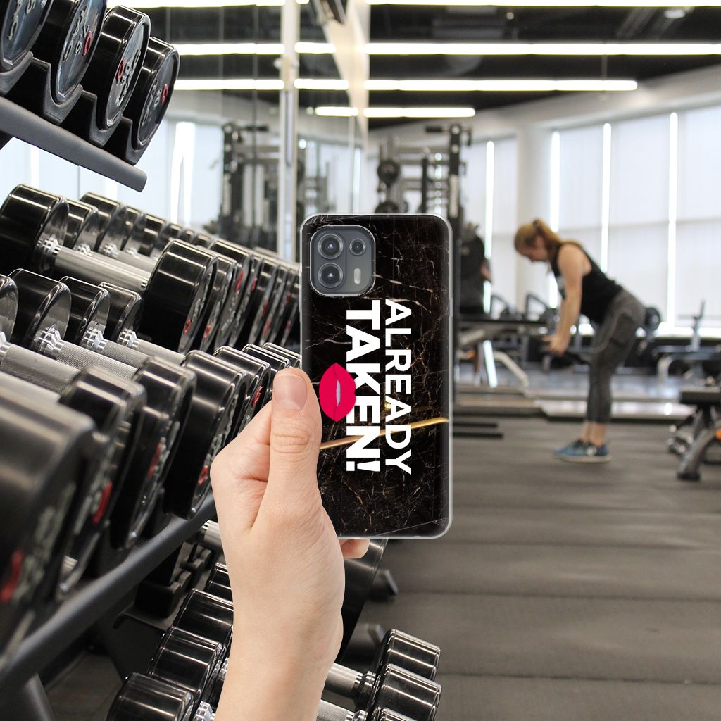 Met deze Motorola Edge 20 Lite Siliconen hoesje met naam met Already Taken Black tekst maak je duidelijk dat jouw smartphone een kostbaar bezit is, waar je zeer lang over wilt beschikken. Je telefoon neem je waarschijnlijk vaak ter hand, dus dan zal de boodschap als je over dit hoesje beschikt zeker weten overkomen. De TPU case wordt alleen aan de bovenkant bedrukt en is zeer flexibel. De randen van het hoesje blijven transparant. Wil je een eigen tekst op je hoesje zetten? Dit kan ook, met onze Phone Case Designer. Deze unieke ontwerpmodule is ook geschikt om het design uit te breiden met foto’s, effecten en patronen.