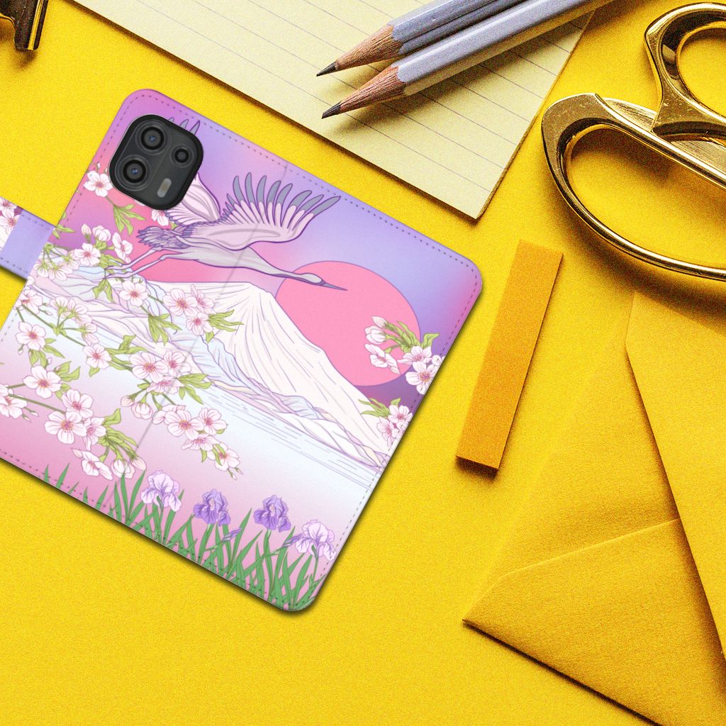 Met dit opvallende en kleurrijke Motorola Edge 20 Lite Telefoonhoesje met Pasjes met Bird Flying design blijft jouw toestel in uitzonderlijke staat. Een ooievaar fleurt al sinds mensenheugenis dorpen en steden op en doet dit ook met jouw boekhoesje. Het design hoesje met deze reigerachtige vogel in roze en paarse kleuren is een zeer goede bescherming voor je telefoon. Het spetterende boekhoesje met opvallende ooievaar beschermt jouw telefoon aan alle zijden en beschikt over verschillende opbergvakjes voor pasjes en briefgeld. De roze met paarse case sluit perfect af met het lipje aan de buitenkant. De houder aan de binnenzijde van het schitterende boekhoesje is van TPU. Dit is ook nog eens zeer flexibel materiaal. Het pu leer aan de buitenkant oogt zeer chique. Kijk voor andere dieren op een design hoesje binnen deze fraaie collectie. Ook kun je zelf een hoesje ontwerpen met je favoriete huisdier.
