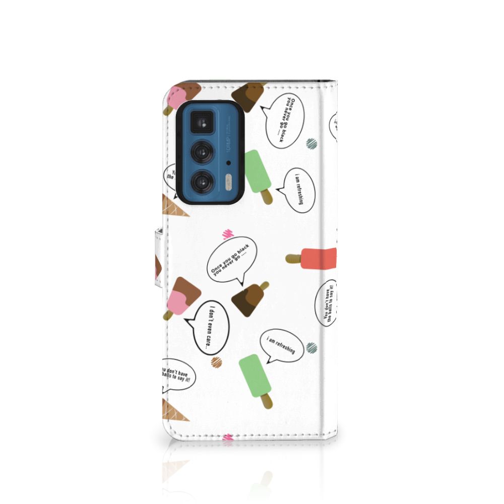 Van dit vrolijke Motorola Edge 20 Pro Book Cover met daarop verschillende soorten ijsjes met tekstwolkjes krijg je sowieso een vrij en zomers gevoel. De zomer komt naar je toe met deze print van ijsjes met tekstwolkjes. Ben je op het strand, dan ontbreekt een lekker ijsje natuurlijk niet. Net zoals je je smartphone bij de hand hebt, met daaromheen een design hoesje met bijzondere ijsjes en tekstwolkjes. Jouw telefoon kan dan de bescherming in de vorm van een boekhoesje met ijsjes zeer goed gebruiken. Alle zijden van dit hoesje worden bedrukt met ijsjes en tekstwolkjes. De case heeft een lipje aan de buitenzijde voor het afsluiten van de telefoon en de houder aan de binnenzijde is van TPU. Onder alle weersomstandigheden zal deze case met verschillende opbergvakjes perfect functioneren, ook op het strand met een ijsje in je hand.