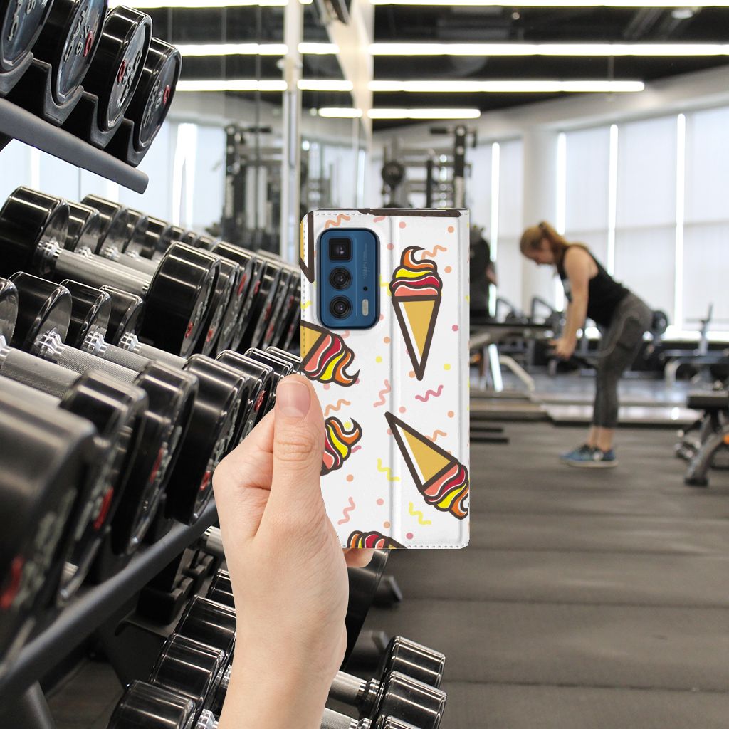Een vrolijke Motorola Edge 20 Pro Flip Style Cover met daarop verschillende ijsjes. Als je daar geen zomers gevoel meer van krijgt, weten wij het ook niet meer. De zomer en ijsjes zijn onlosmakelijk met elkaar verbonden. Tijdens een bezoekje aan het strand mag een lekker ijsje bijvoorbeeld niet ontbreken. Een design hoesje met lekkere Icecream print past daar natuurlijk ook ontzettend goed bij. Jouw telefoon is helemaal beschermd met een stand case met ijsjes design. De aankoop van deze case is een heerlijke investering, die zich gegarandeerd terugbetaalt. Alle zijden van dit hoesje worden bedrukt met ijsjes. De case heeft een speciale standaard en de houder aan de binnenzijde is van TPU. Onder alle weersomstandigheden zal deze case met opbergvakje perfect functioneren, ook in de zomer met een ijsje in je hand. Dit smaakvolle hoesje is zeer goedkoop te bestellen en wordt zeer snel bezorgd.