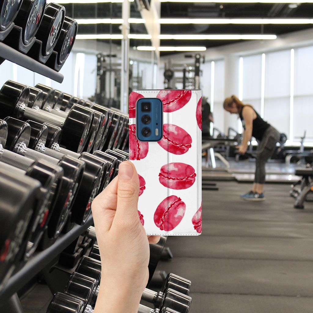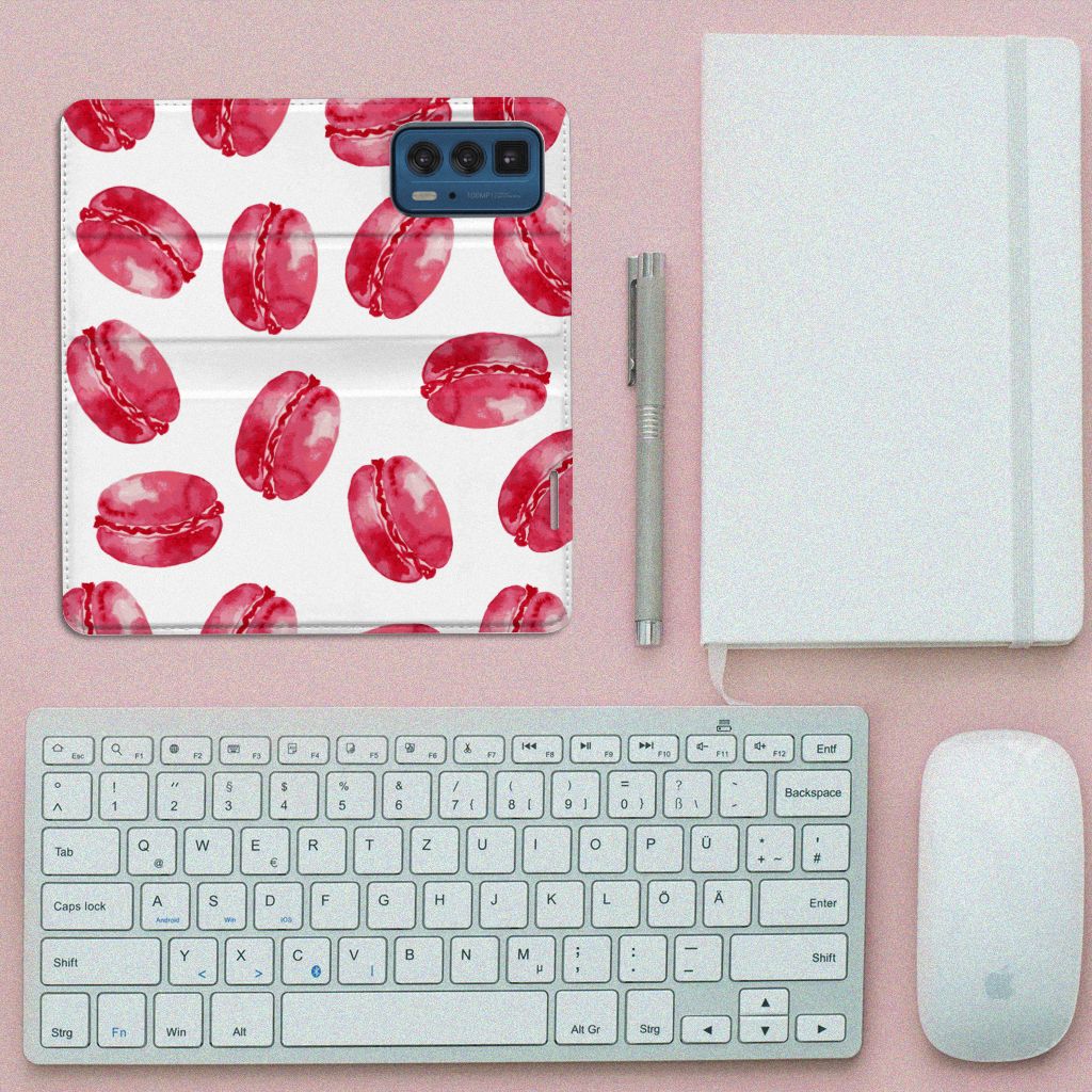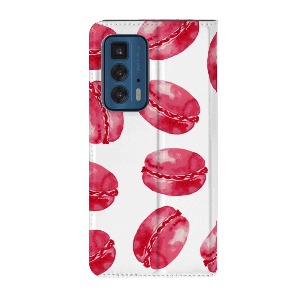 Dit stand hoesje met Pink Macarons is een zeer opvallende bescherming voor jouw smartphone. Macarons zijn Franse koekjes: kleine, rond en luchtig. Ze worden in veel verschillende smaken gemaakt, herkenbaar aan de verschillende kleuren zoals chocolade (donkerbruin), mokka (middenbruin), kersen (rood), pistache (groen), aardbei (roze), framboos (karmijn). Deze kleuren kun je net allemaal zien op dit fraaie design hoesje met roze macarons. Heb je altijd al een Motorola Edge 20 Pro Flip Style Cover willen hebben met roze macarons? Grijp dan nu je kans. Deze case heeft zeer veel goede eigenschappen, zoals 1 opbergvakje en een magnetische sluiting aan de binnenkant. Dit design hoesje met roze macarons wordt aan alle zijden bedrukt. De houder aan de binnenkant van het hoesje is van TPU. De case heeft ook een handige standaard.