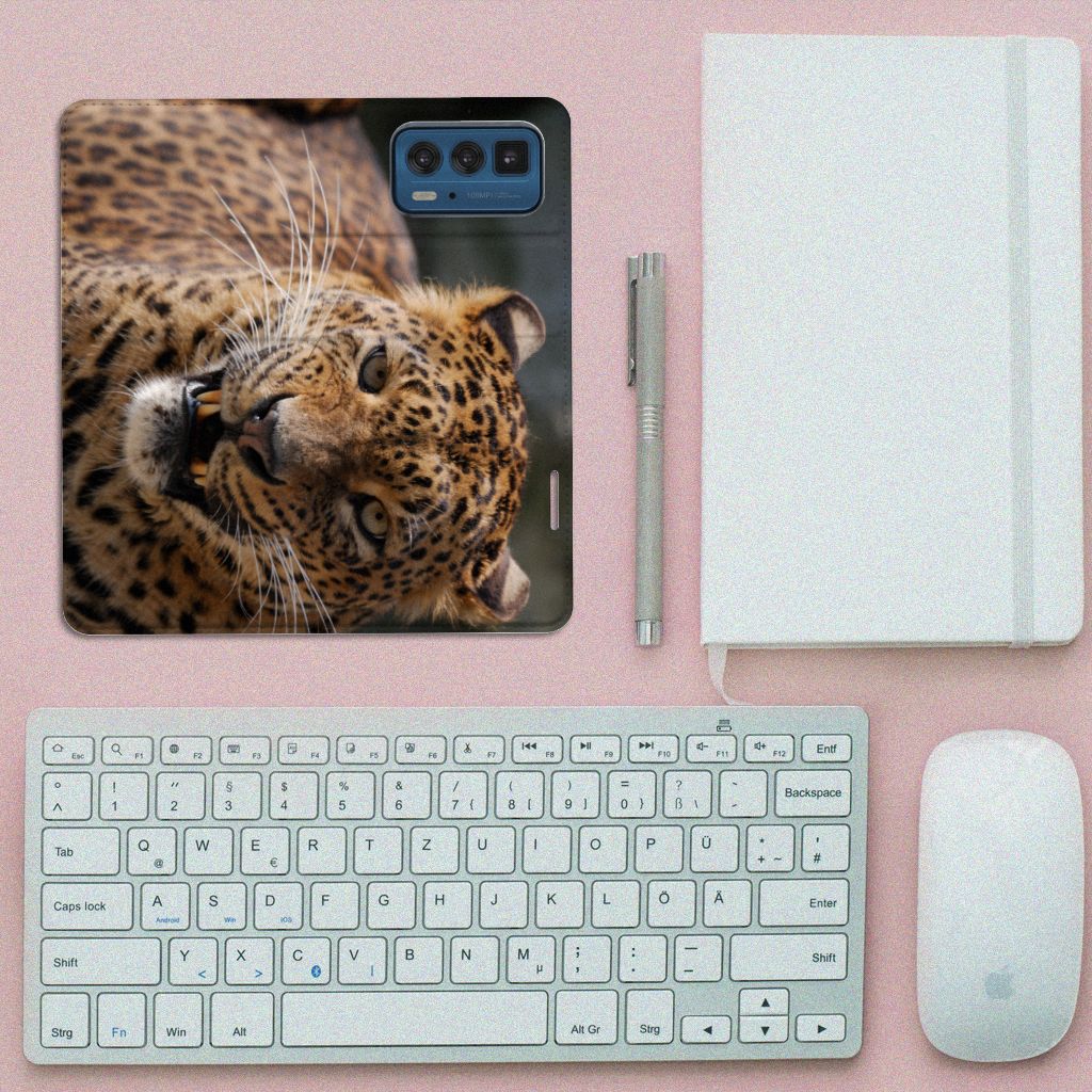 Het luipaard wordt ook wel een panter genoemd en is een sluwe kat. De bruingele vacht met een patroon van rozetachtige vlekken geeft een goede schutkleur. Dit zie je ook op een fraaie manier afgebeeld op dit super stoere hoesje. Mensen die indruk willen maken kopen deze stand case met design van het luipaard. Een Motorola Edge 20 Pro Hoesje maken is van alle markten thuis. Het is praktisch – vanwege onder meer het opbergvakje en de magnetische sluiting aan de binnenzijde – maar beschermt jouw smartphone tevens beter dan welke case ook. Het luipaard is sterk en behendig en misschien typeert jou dat ook wel. Dan past dit hoesje met luipaard uitstekend bij jou. De houder van TPU aan de binnenzijde is net zo sterk als het luipaard. Jouw telefoon is perfect beschermd. De case heeft tevens een standaard.