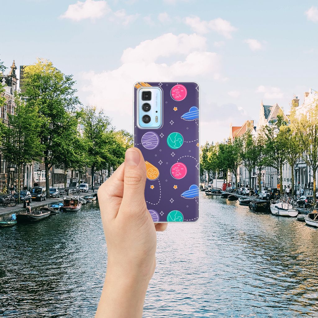 Ben je een beetje geïnteresseerd in buitenaards leven? Dan kan je wel eens enthousiast raken van deze Motorola Edge 20 Pro Silicone Back Cover met Space print. Dus mensen die van science fiction houden zullen deze case ongetwijfeld mooi vinden. Er zijn verschillende planeten en vliegende schotels te ontdekken in dit design hoesje. Dit kunstwerkje is voor heel weinig geld te bestellen op onze website. Je krijgt er maximale bescherming van je smartphone voor terug. De TPU case wordt alleen aan de bovenkant met space bedrukt en is zeer flexibel. De randen van het hoesje blijven transparant en worden niet bedrukt. Je zult ontdekken dat dit hele stevige telefoonhoesje een heel goede bescherming biedt tegen alle vormen van schade. Met dit hoesje hoef je niet bang te zijn dat er krassen op je design komen of scheuren in je scherm.