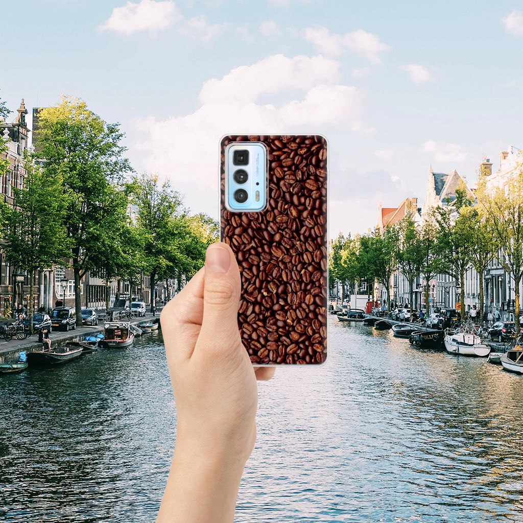 Als je de lekkerste koffie wilt dan kun je beste koffiebonen kopen. Koffie is namelijk het verst wanneer je de bonen zelf maalt. En wie houdt nou niet van de geur van vers gemaalde koffie? Daarom hebben wij de mooiste Koffiebonen op een smartphone hoesje gezet. Ben je barista, dan is dit het perfecte hoesje voor jouw werktelefoon. De koffiebonen staan op een tpu case. Dit is een zeer flexibel hoesje, dat altijd en overal in je broekzak past. Alleen de bovenkant van dit hoesje wordt door ons bedrukt, op zeer duurzame manier. Mensen die houden van een stevige espresso, kiezen voor dit degelijke design hoesje met bonen. Er staan geen bonen op de zijkanten van een Motorola Edge 20 Pro Siliconen Case. Wel kun je zelf een eigen tekst toevoegen aan het design. Hoe mooi is dat?