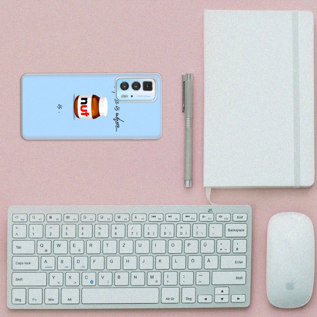 Ben je liefhebber van chocoladepasta, dan is dit het perfecte Motorola Edge 20 Pro Siliconen Case voor jou. De chocoladepasta is enorm populair, dus is het niet zo heel gek dat je een ‘Nut Home’ tpu case in een blauwe kleur aantreft in ons assortiment design hoesjes met illustraties. Dit tpu hoesje is zeer flexibel en past altijd in je broekzak. Alleen de bovenkant van dit hoesje wordt door ons bedrukt in blauwe kleur met de pasta, op zeer duurzame manier. Mensen die houden van de bekendste pasta van het moment, kiezen voor deze blauwe tpu case. Er staan geen illustraties op de zijkanten van een tpu case. Je kunt ook een eigen tekst toevoegen aan het opvallende design.