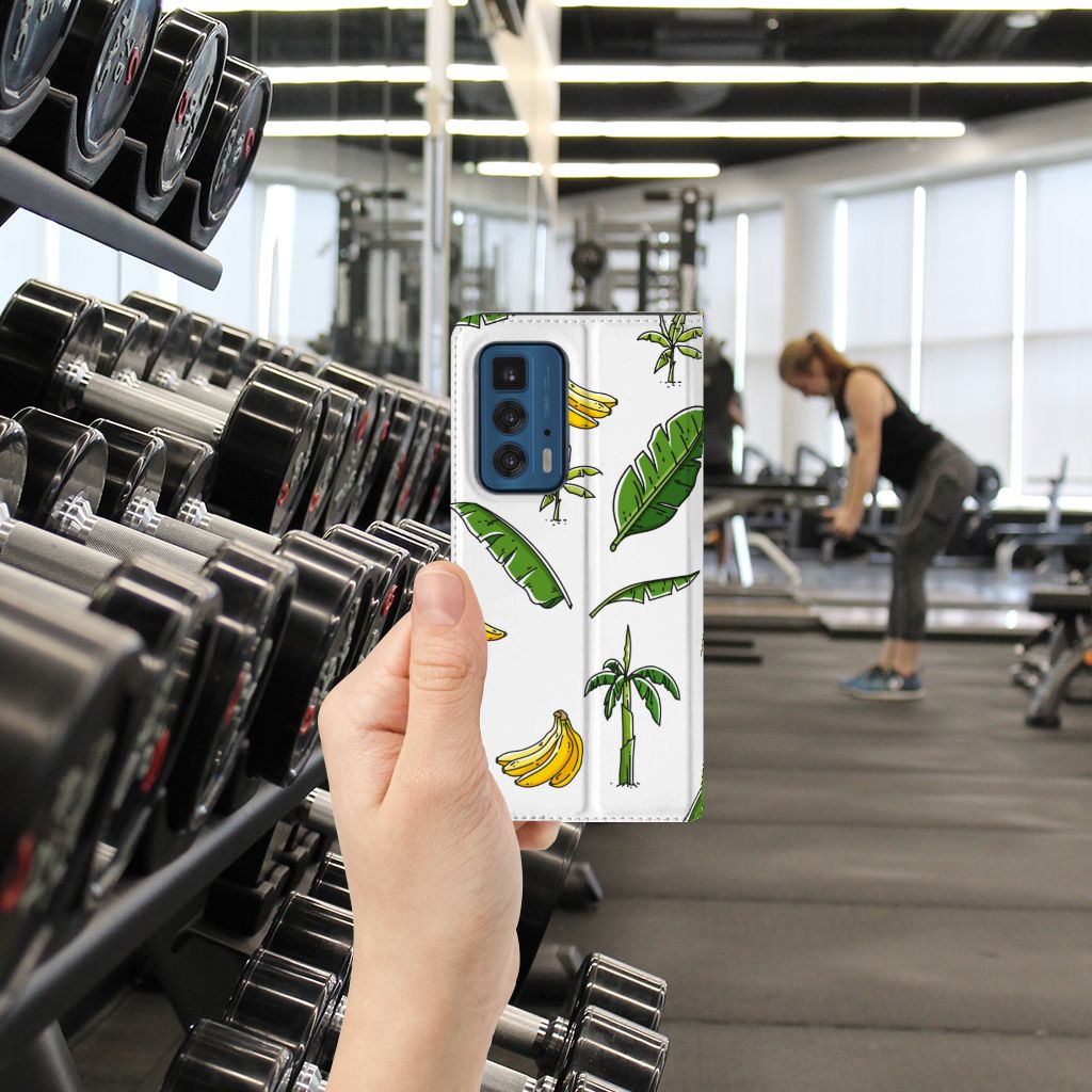 Heb jij al zin om op vakantie te gaan? Dat krijg je hoe dan ook als je één blik werpt op dit vrolijke hoesje voor je Motorola Edge 20 Pro met Banana Tree design. Het fleurige tafereel van bananenbomen, bananenbladeren en bananen doet je gedachten afdwalen naar paradijselijke bountystranden met azuurblauwe zee en helderwitte zandpartijen. Kortom: dit hoesje is goed voor je humeur. Naast het luchtige design zijn daar nog meer redenen voor, want dankzij de stevige materialen weet je zeker dat dit Smart Cover je telefoon altijd optimaal beschermt. De solide hoes van PU-leer beschikt ook over een 1 pashouder en een speciale standaard. Het hoesje wordt afgesloten met een magneet aan de binnenzijde. De houder aan de binnenzijde is van TPU. Alle zijden worden bedrukt. Met dit hoesje breng je jezelf in zomerse sferen en gun je jezelf een krasvrije telefoon.