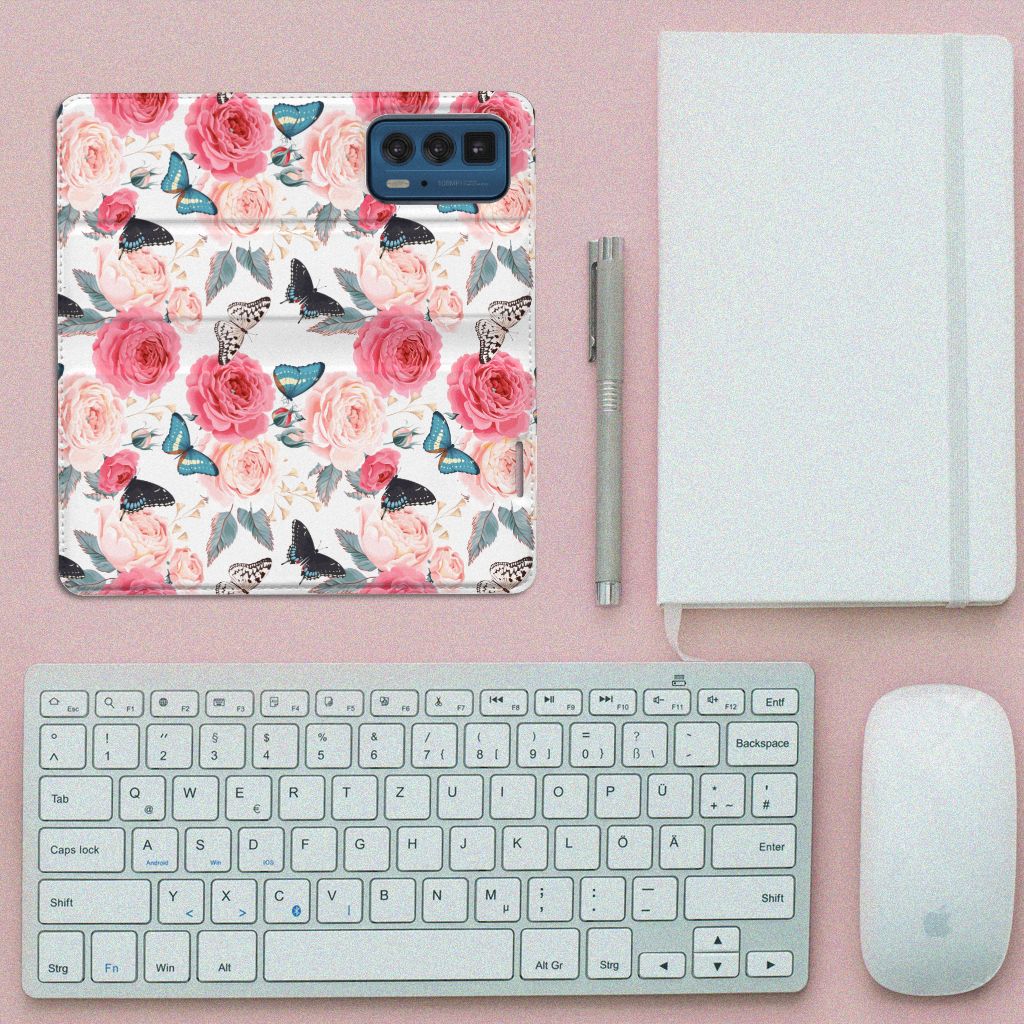 Motorola Edge 20 Pro Smart Cover Butterfly Roses