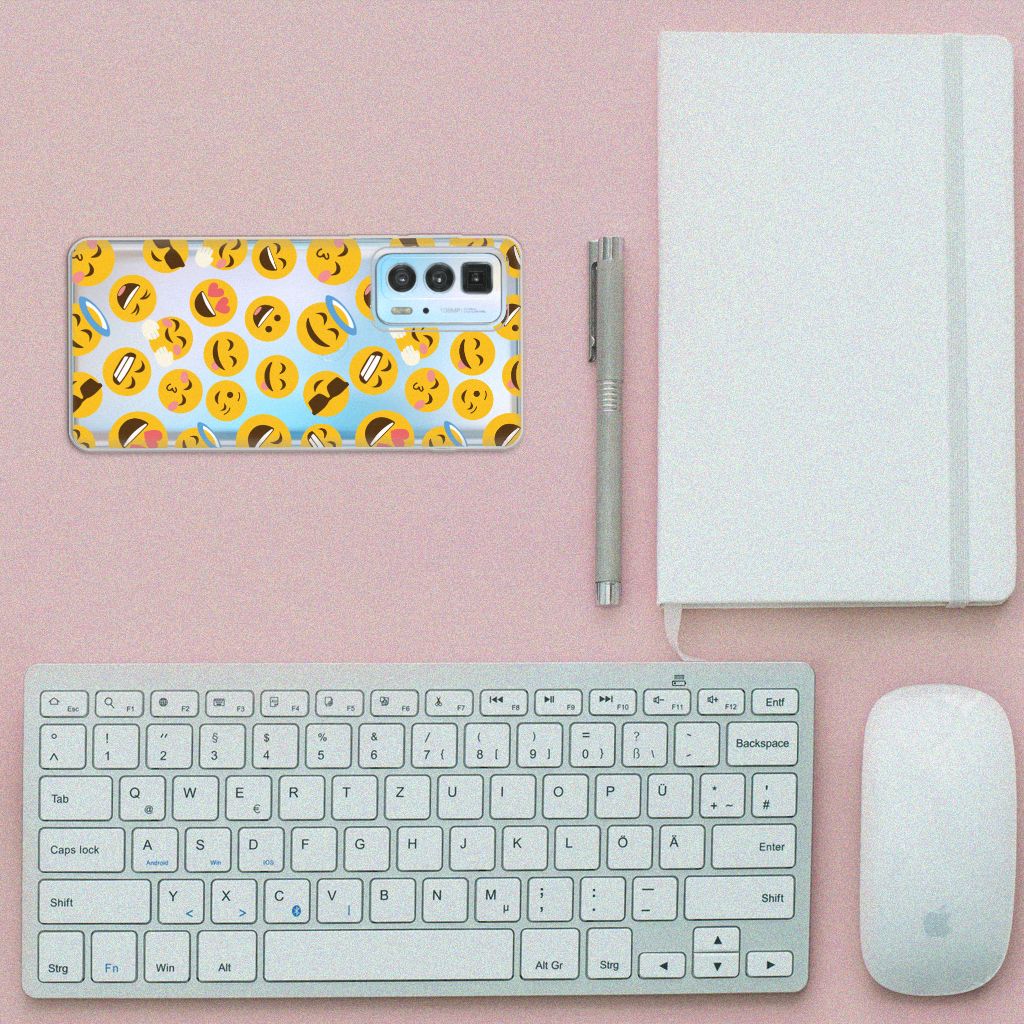 Je gebruikt ze waarschijnlijk dagelijks: emoji’s. Daarom hebben we besloten ze op een design hoesje te zetten. De kleurrijke, vaak gele emoticons maken chatberichten net wat spontaner. Dat hebben we allemaal te danken aan Japan, waar de emoji’s die we zo goed kennen vandaan komen. Ondertussen zijn er meer dan 1800! Deze passen natuurlijk niet allemaal op een Motorola Edge 20 Pro TPU bumper, maar we hebben de meeste gebruikte exemplaren erop gezet. Deze tpu case is voorzien van opstaande randen zodat het touchscreen van je telefoon beter is beschermd. Super handig. Het TPU zelf is zeer flexibel en is op maat gemaakt. We gebruiken emoji’s vaak om complete woorden te vervangen. Dit smartphone hoesje zegt dan ook meer dan duizend woorden kunnen. De tpu case wordt alleen aan de bovenzijde bedrukt met emoji’s. De zijkanten van de case worden niet bedrukt en blijven transparant.