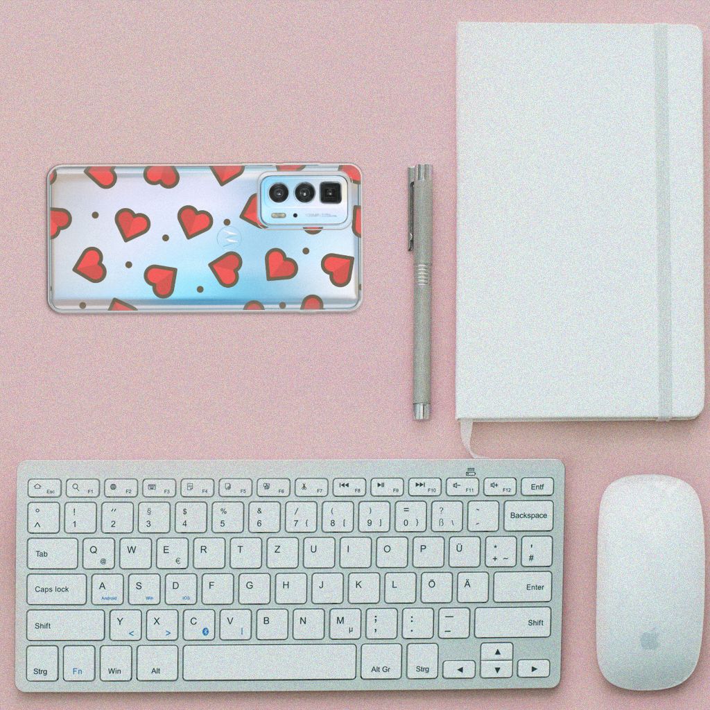 Met deze Motorola Edge 20 Pro TPU bumper met hartjes op een grijs met witte achtergrond maak jij een goede beurt als je dit cadeau geeft aan je vriend of vriendin. Bekroon je liefde voor elkaar met deze hele mooie tpu case, die jouw telefoon met name aan de achterkant en zijkanten goed beschermt. Dit is echt een prachtige manier om je telefoon te beschermen. Het tpu hoesje met design met Hearts is ook nog eens zeer praktisch, mede door het buigzame materiaal en de uitsparingen. Als je telefoon met het TPU hoesje uit je hand valt, stuitert het als het ware meteen weer terug in je hand en zal het scherm in tact blijven. De case heeft namelijk opstaande randen aan de voorkant. Alleen de bovenkant van de case wordt bedrukt met hartjes, de zijkanten zijn doorzichtig. Voor een habbekrats is dit hoesje met hartjes op een grijs met witte achtergrond te bestellen.