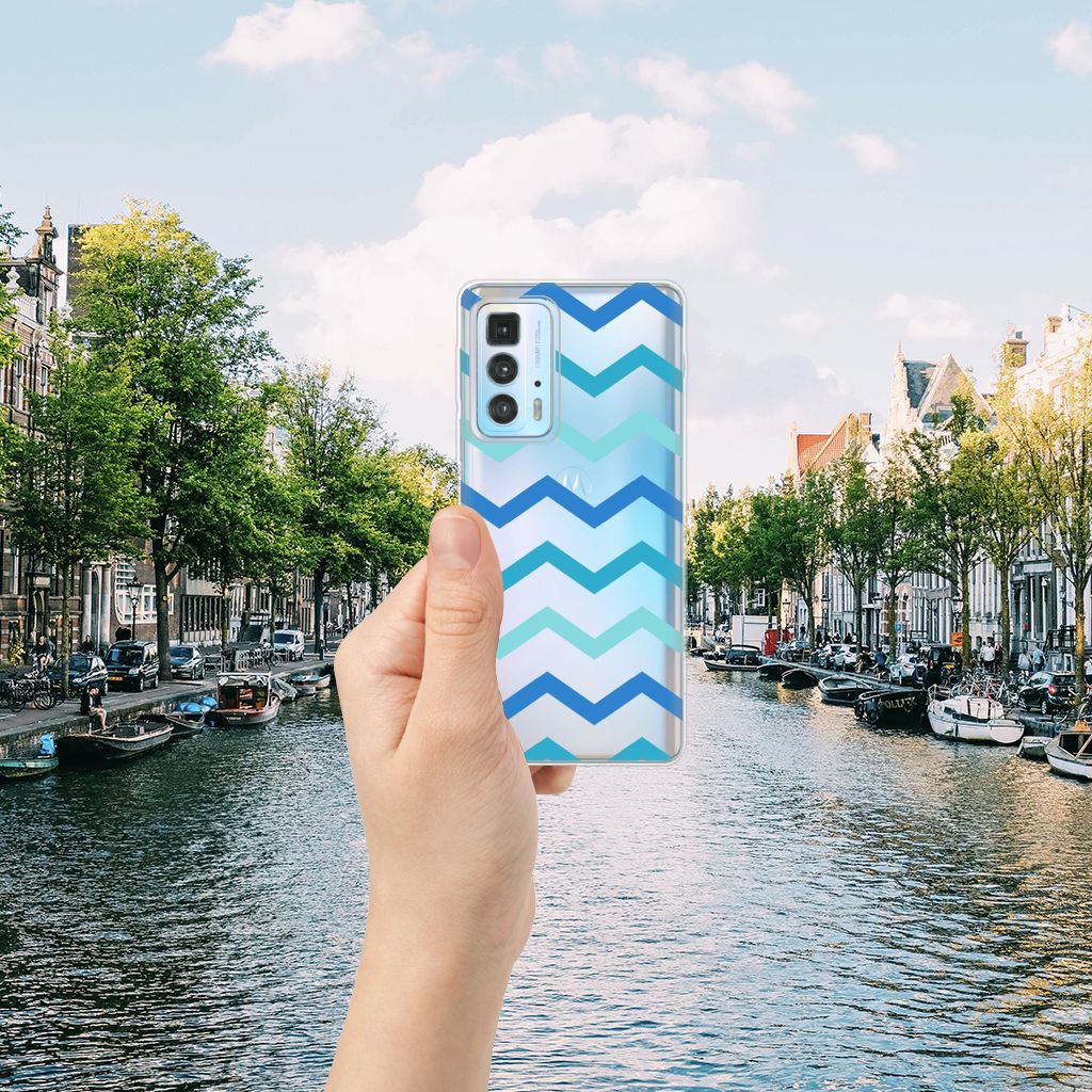 Dit zigzag blauwe design hoesje is speciaal ontworpen voor jou. We hebben bewust verschillende stijlen blauw gebruikt, zodat er voldoende sprake is van variatie. Dit blauwwitte TPU bumper ziet er super strak uit. Dat kan ook niet anders, als je weet dat onze zeer talentvolle designer er hoogstpersoonlijk voor verantwoordelijk is. Hij schudt wekelijks nieuwe designs uit zijn mouw en dit zigzag blauwe hoesje is een van zijn fraaiste creaties. Een heel dik design hoesje, al zeggen we het zelf. Valt dit blauwwitte design hoesje goed bij jou? Bestel het dan vandaag nog en je hebt het morgen in huis. Het design staat op een TPU case. Dit hoesje wordt alleen aan de bovenkant bedrukt en is zeer flexibel. De randen van het hoesje blijven transparant en worden niet bedrukt. Met dit hoesje past jouw Motorola Edge 20 Pro altijd in je broekzak.