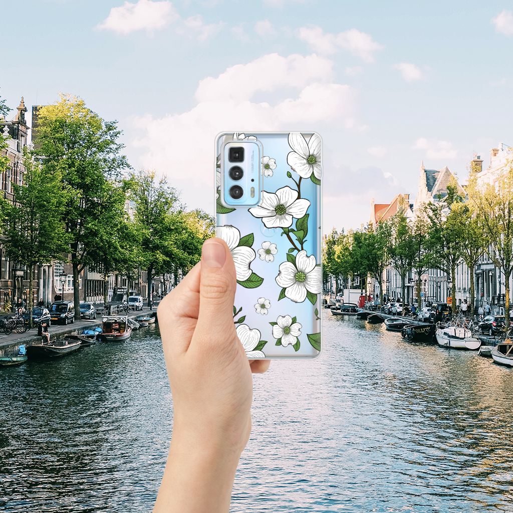 Ben je op zoek naar een uniek telefoonhoesje voor je Motorola Edge 20 Pro? Dan ben je bij B2C Telecom aan het juiste adres! Speciaal voor jou hebben we dit prachtige Dogwood Flowers design in onze collectie hoesjes opgenomen. Het design wordt bedrukt op een TPU Case en is gemaakt van flexibel rubber. Het design wordt alleen aan de bovenkant van het hoesje bedrukt en de randen blijven transparant. Aan de zijkanten zijn uitsparingen gemaakt waardoor je met gemak alle knoppen en poorten kunt bedienen. Wij adviseren om dit hoesje in combinatie met een screenprotector te gebruiken voor een langere levensduur van je telefoon. Wil je dit design hoesje nog iets extra's geven? Voeg dan gratis je naam of een quote toe! Is dit design hoesje toch niet helemaal wat je zocht? Ontwerp dan zelf een hoesje in ons ontwerpprogramma.