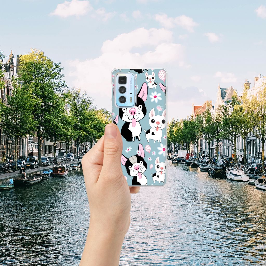 De Hondjes op deze Motorola Edge 20 Pro TPU Hoesje ogen zeer aandoenlijk. Deze hondjes met zwart-witte vacht willen jou zelfs bijna in je armen springen, zo blij zijn ze dat ze op dit design zijn gezet. Het tpu hoesje is een zeer flexibele smartphone case. Dit hoesje met zwarte en witte hondjes is niet alleen zeer praktisch vanwege de opstaande randen aan de voorzijde, maar beschermt je smartphone ook nog eens zeer goed. Op de bovenkant van de tpu case, die altijd in je broekzak past, staan de vrolijke hondjes. Veel Nederlanders hebben momenteel een hond als huisdier. Honden zijn dus erg populair. Net als deze tpu case, die wel eens het ideale cadeautje zou kunnen zijn voor jouw vriendin of dochter. De case blijft aan de zijkanten doorzichtig.